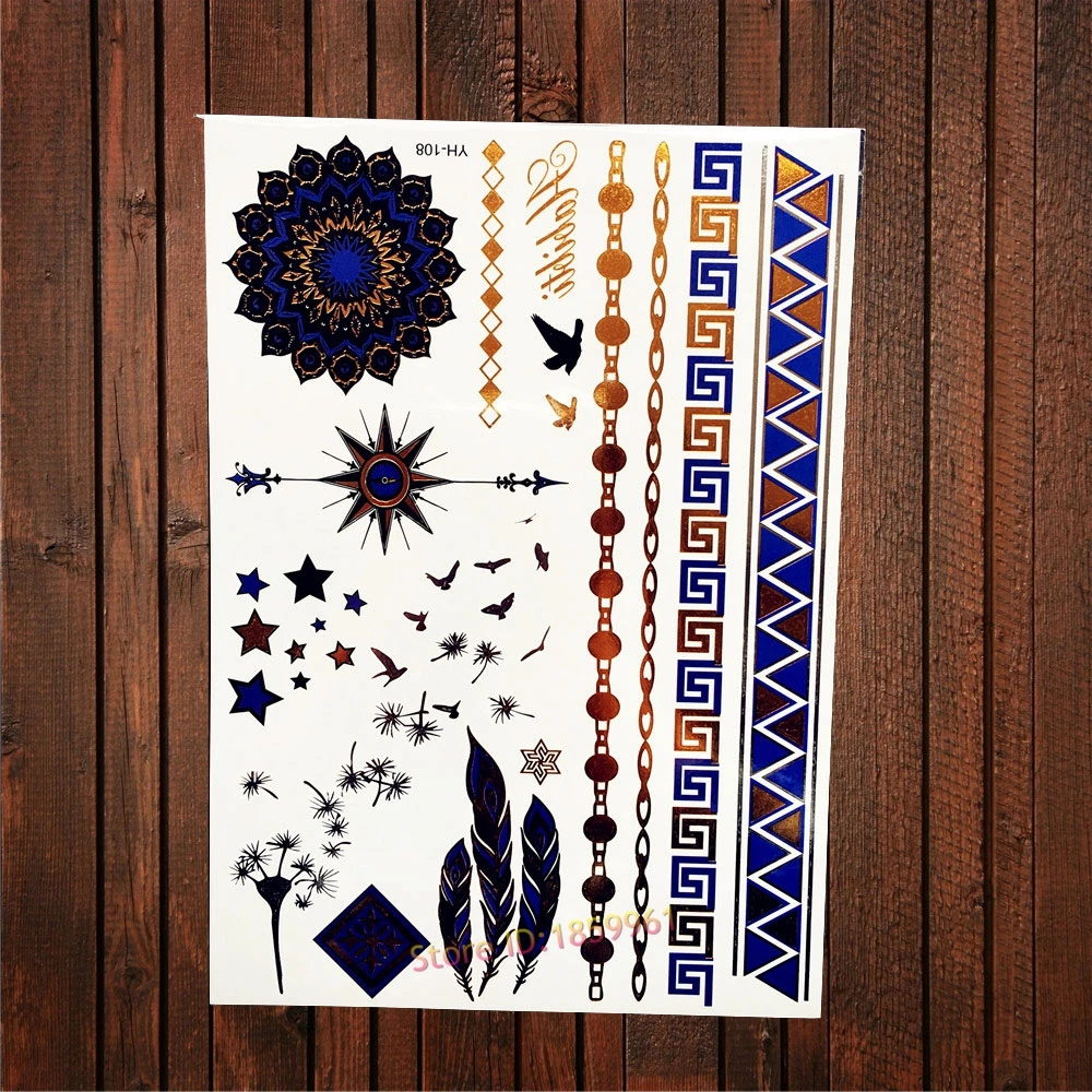 1 шт., водостойкая Золотая, серебряная, металлическая тату, Ловец снов, ласточка, хна, дизайн, женский боди-арт, временная тату-наклейка, AYS124