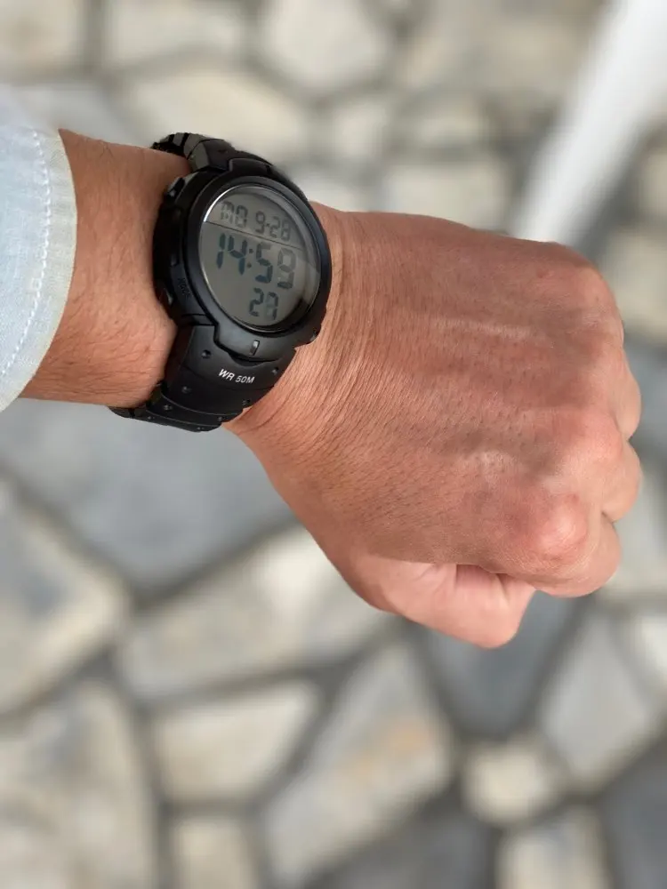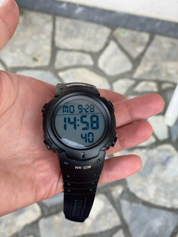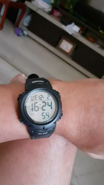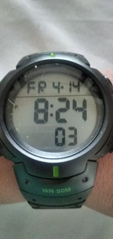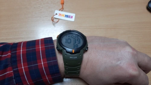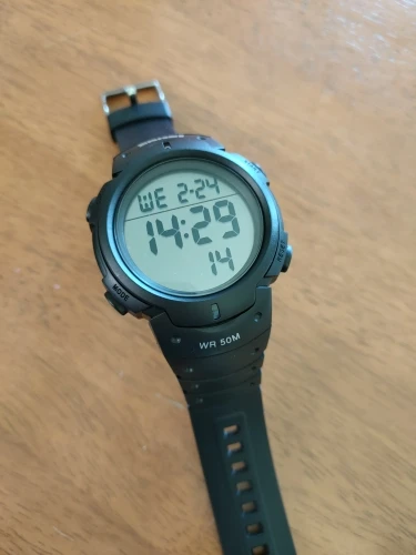 Заказываю данные часы во второй раз. Первые носил сын. Эксплуатировал их в тяжёлых условиях. Купался в бассейне и море, мылся и спал в них, занимался физическими упражнениями. Часы показали себя с положительной стороны. Через год использования порвался ремешок (это у них слабое место), стёрлись надписи и зелёные точки, после чего он носил часы просто в кармане до тех пор пока не потерял. Эти часы приобрёл для замены утерянных. Фотографировать не стал по тому, что они в реалиях такие и есть как на картинке.