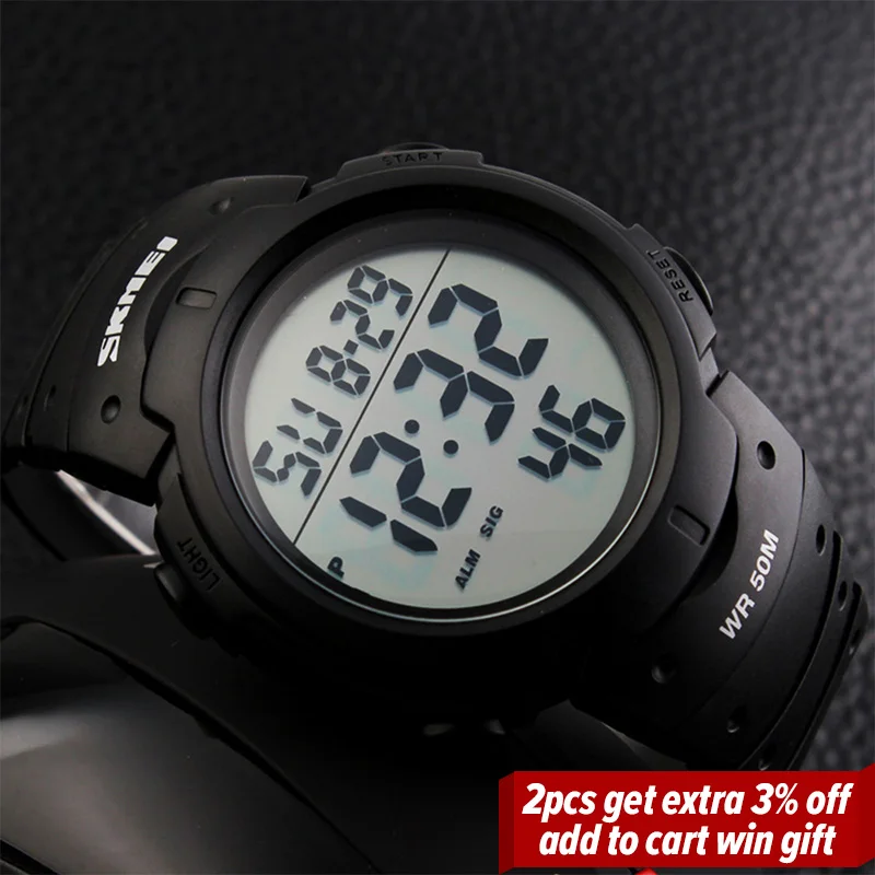 SKMEI Открытый Спортивные Часы Мужчины Кроссовки Большой Циферблат Цифровой Хронограф Наручные Часы PU Ремень 50 М Водонепроницаемые Часы 1068