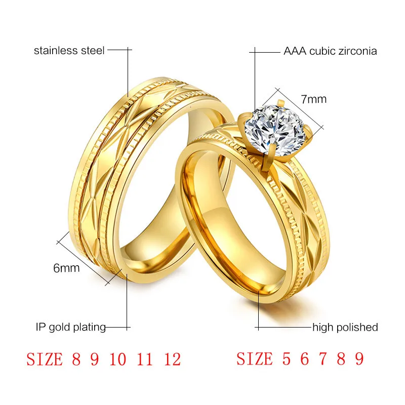 Vnox камень cz Обручальные кольца для пары золото-Цвет Кристалл Для женщинДля мужчин