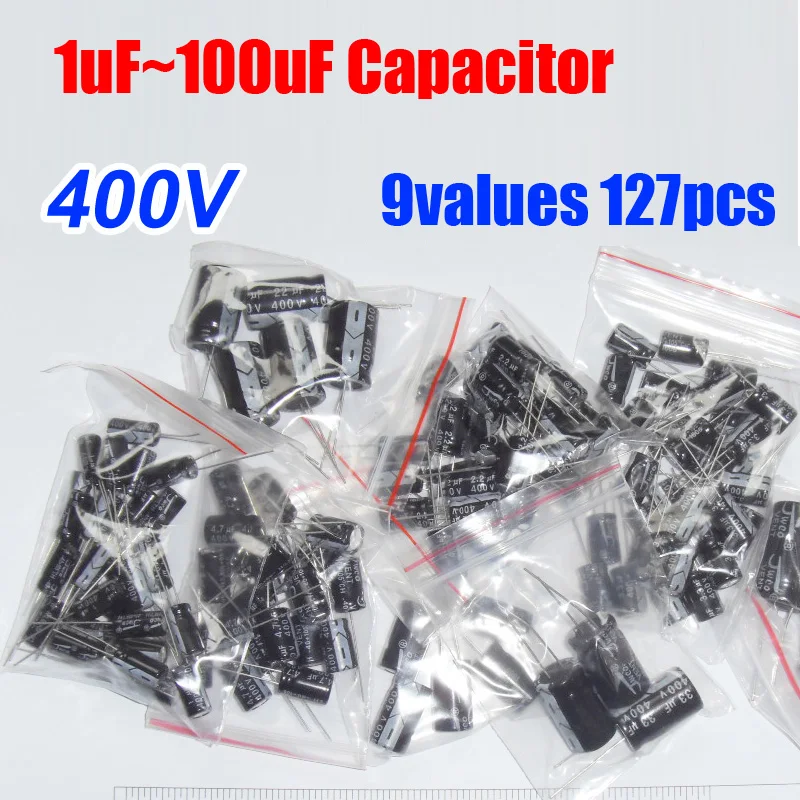 9 значений, всего 127 шт., 400 В, алюминиевая электролитическая фотомагнитола мкФ Ф-100 мкФ
