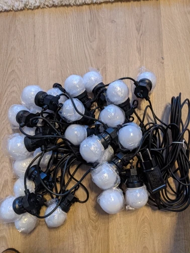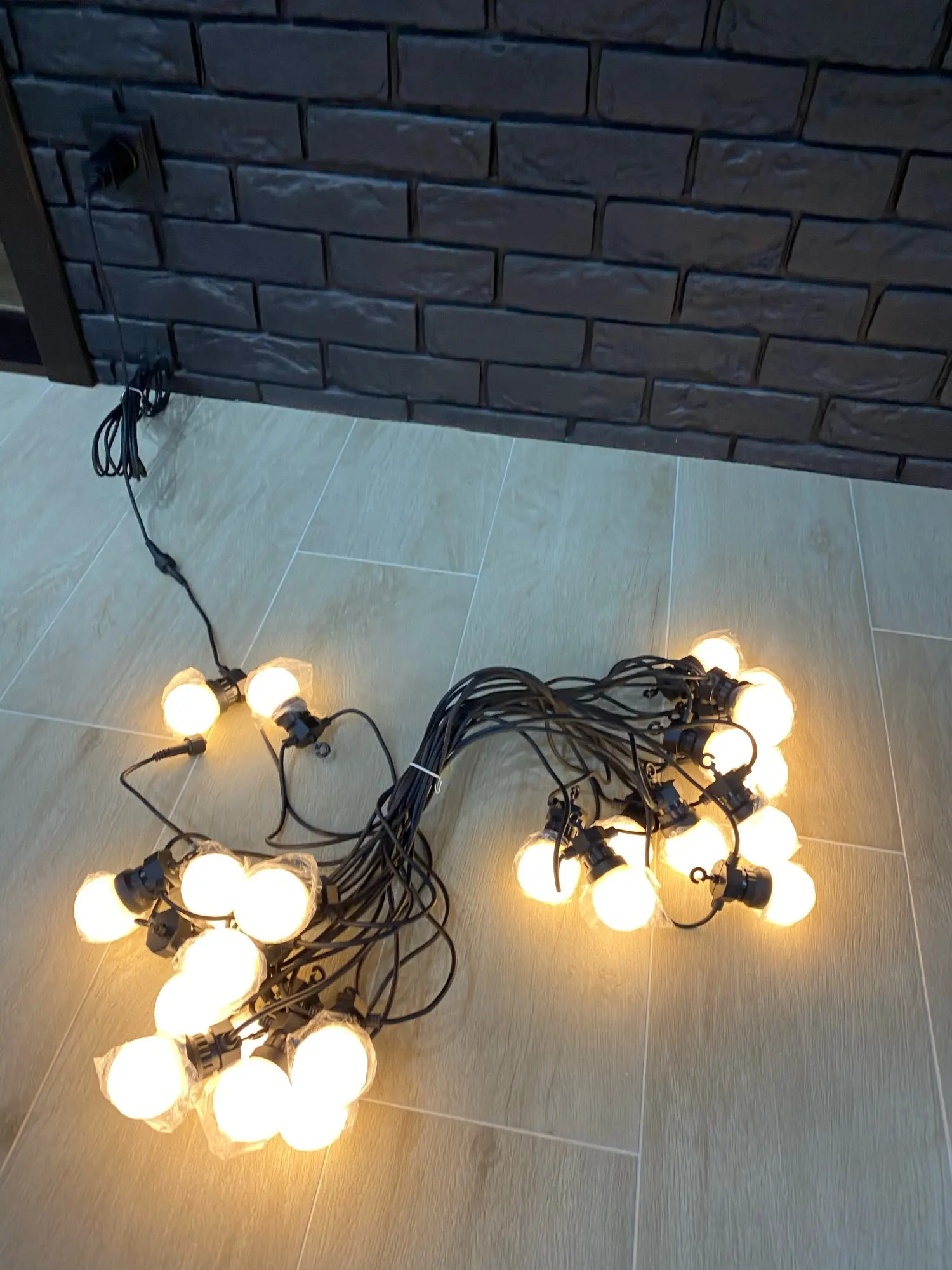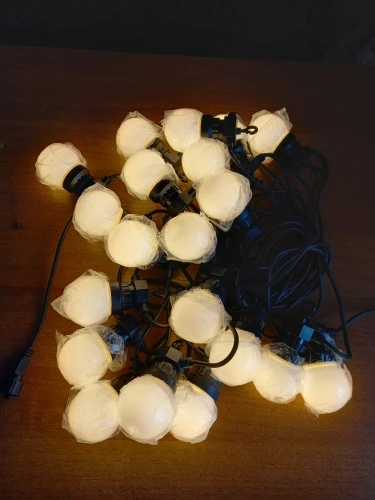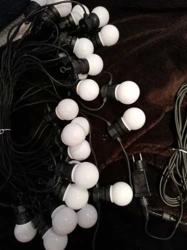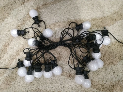Хорошие лампы, все качественно. Мне не понравились провода, они были сложены в коробку, и не могут выпрямиться, как мятые, , выглядит неаккуратно, и наверное выпрямиться так и не смогут. Повесила в 2 ряда, так как лампочки все таки редко, 50 см, но более концентированной герлянды я не нашла