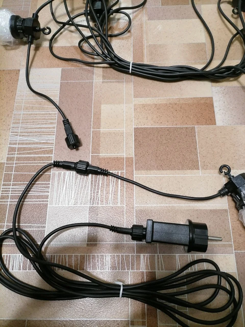 Гирлянда отличная! Из плюсов: ip65, много штекерных соединений (см. фото) - можно нарастить несколько гирлянд (судя по описанию - до 3-х), высокое качество изготовления, крючок на каждой лампочке. Минусы тоже есть, но незначительные: крючки вращаются, но очень туго - на морозе один сломался; провод дубеет на морозе (правда было -35 :)))) В целом - только положительные эмоции, рекомендую этого продавца!
