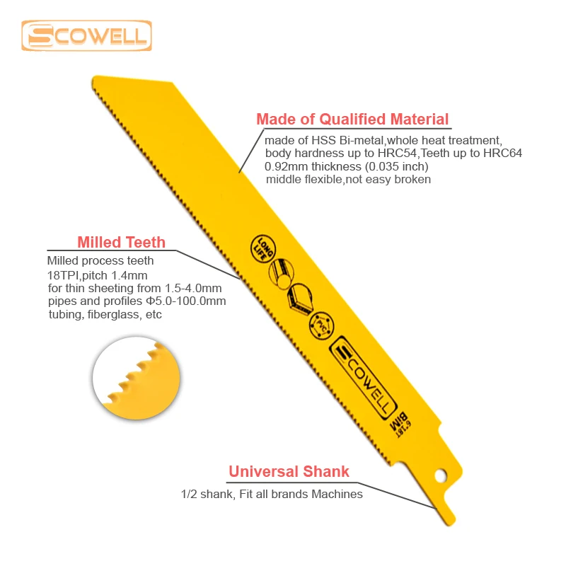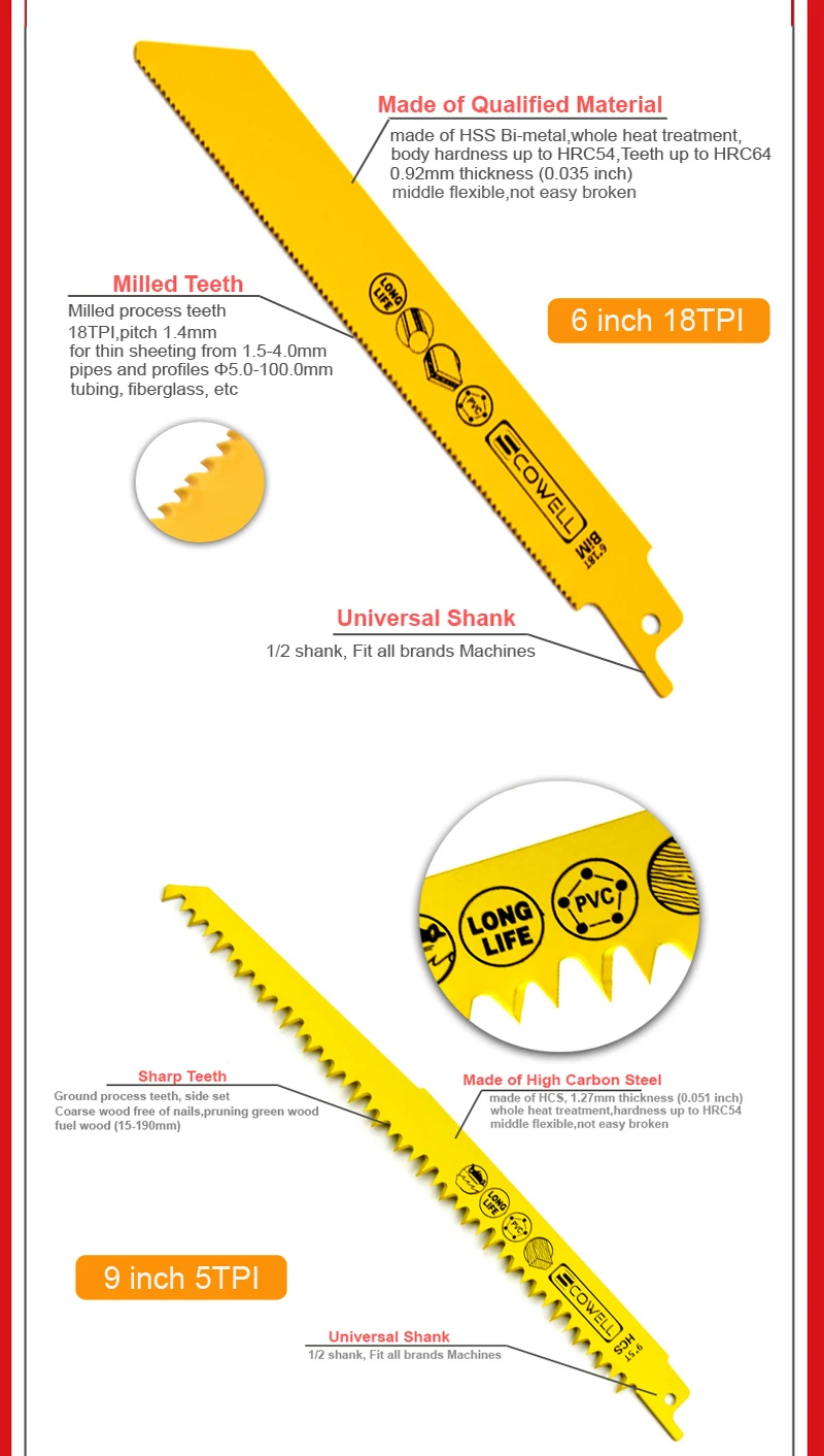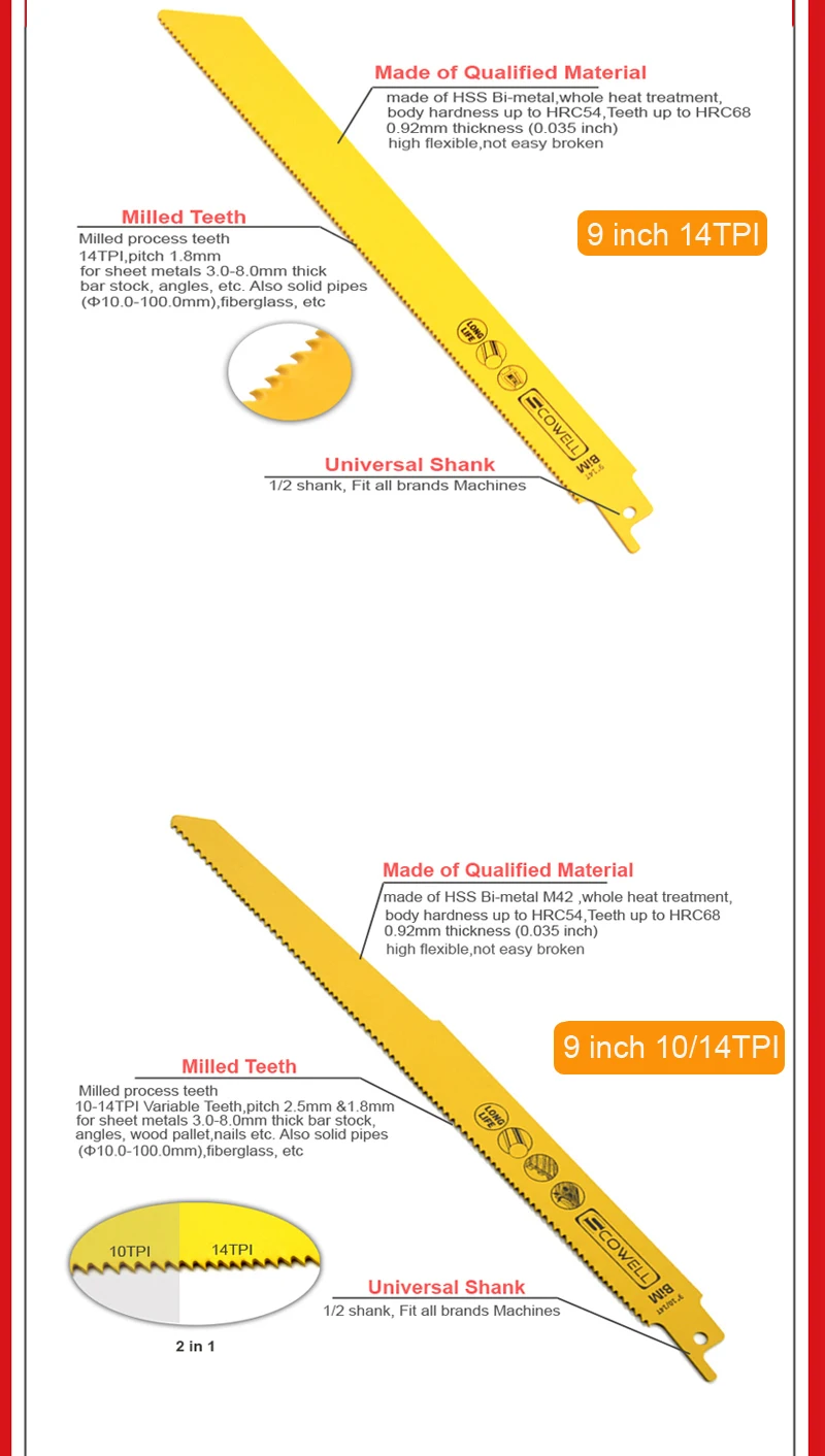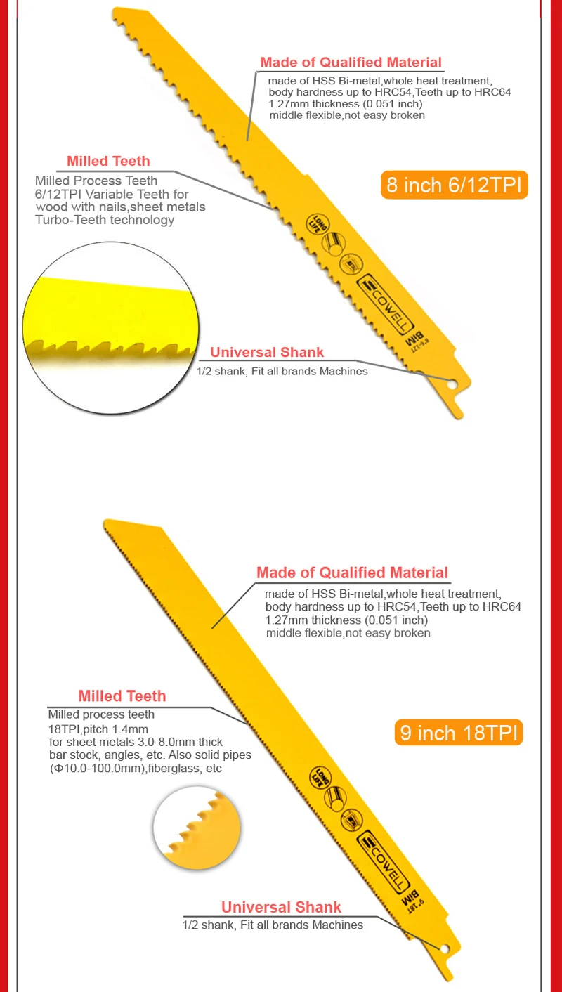 10/14TPI переменные зубы: подходит для резки дерева, ногтей, гипсокартона, тонкого металла, среднего твердого металла, трубы