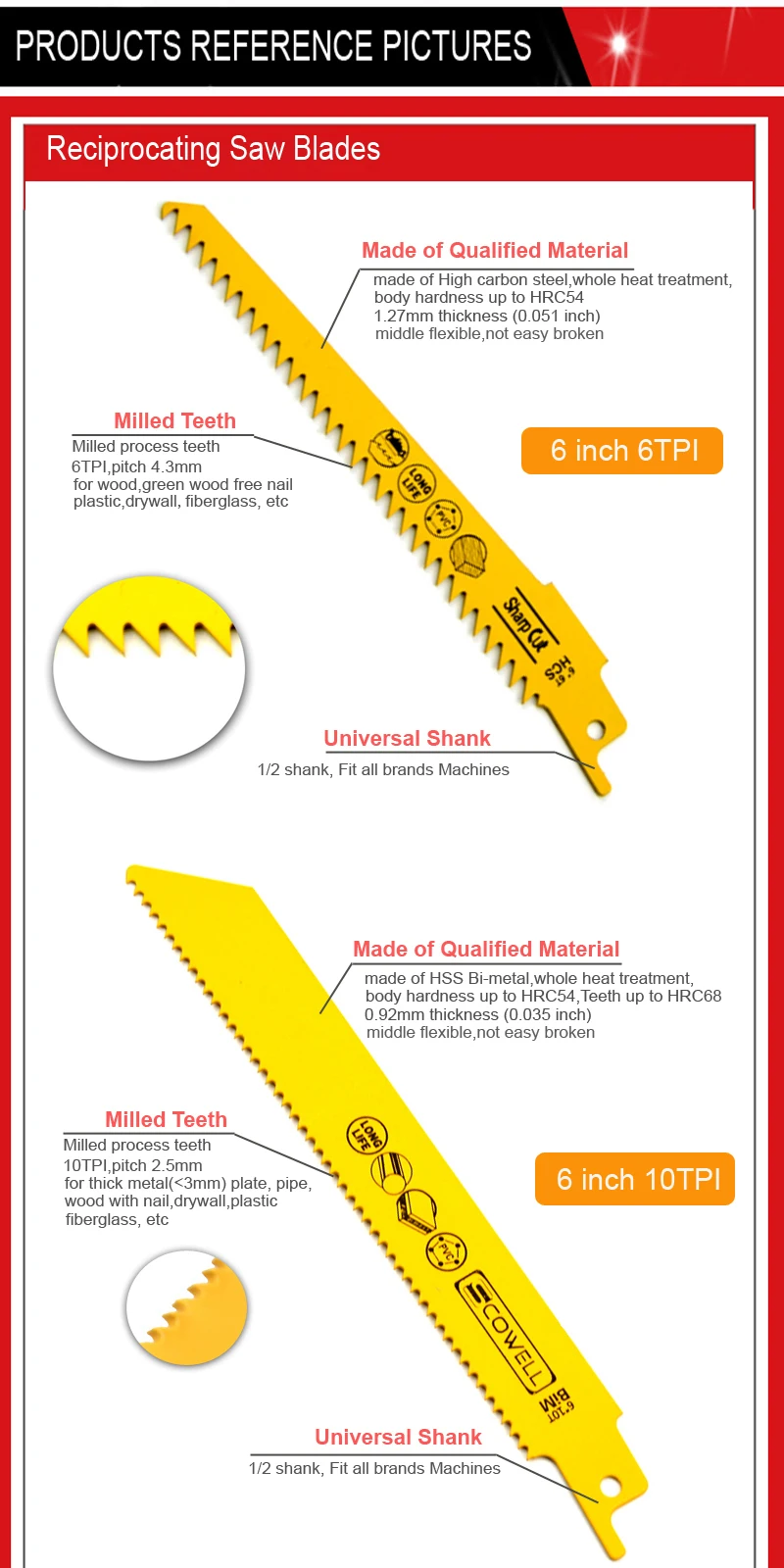 10TPI: подходит для резки дерева, ногтей, гипсокартона, пластика, тонкого металлического листа, мягкого металла