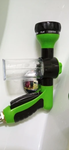 Пистолет зачётный, стакан на 100мл шампуня, регулировка подачи шампуня в три ступени, и режим только вода. Куча вариантов распыления: струя, душ, спрей и тд. Быстросъемник из ручки выкручивается, резьба 3/4" обычная водопроводная. Я заменил на гайку 3/4х1/2 и подключил к душевому шлангу- собаку мыть, ну просто збс. Курок с фиксатором положения, что в случае с душем оч удобно. Мне, при заказе, как-то впихнулась доставка в сраную пятёрочку вместо почты, стоит внимательней смотреть что выбрано по дефолту при заказе