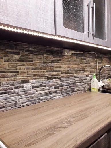 Лента хорошая, рабочая, но мне не подошла. Покупала для освещения рабочей зоны на кухне. Освещает только 20 см, до рабочей зоны света не хватает. Всë же это интерьерная подсветка, а не функциональная. Еще минус в том, что нет выключателя, чтоб не включить или выключить нужно вставлять вилку в розетку.