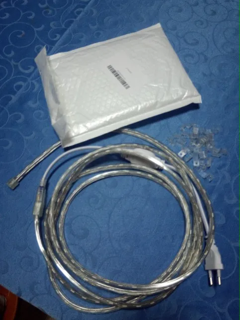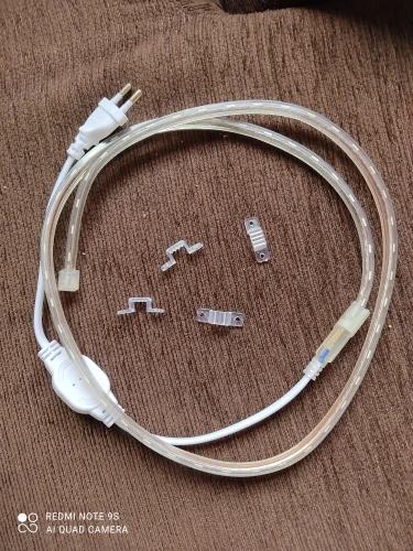 Прислали за 5 дней. окончание и место подачи питания не герметично, залито клеем, но не плотно. В комплекте пластиковые. мягкие крепления. шнур коротковат. И есть разрыв(пропуск диодов) через каждый метр для разрезания.