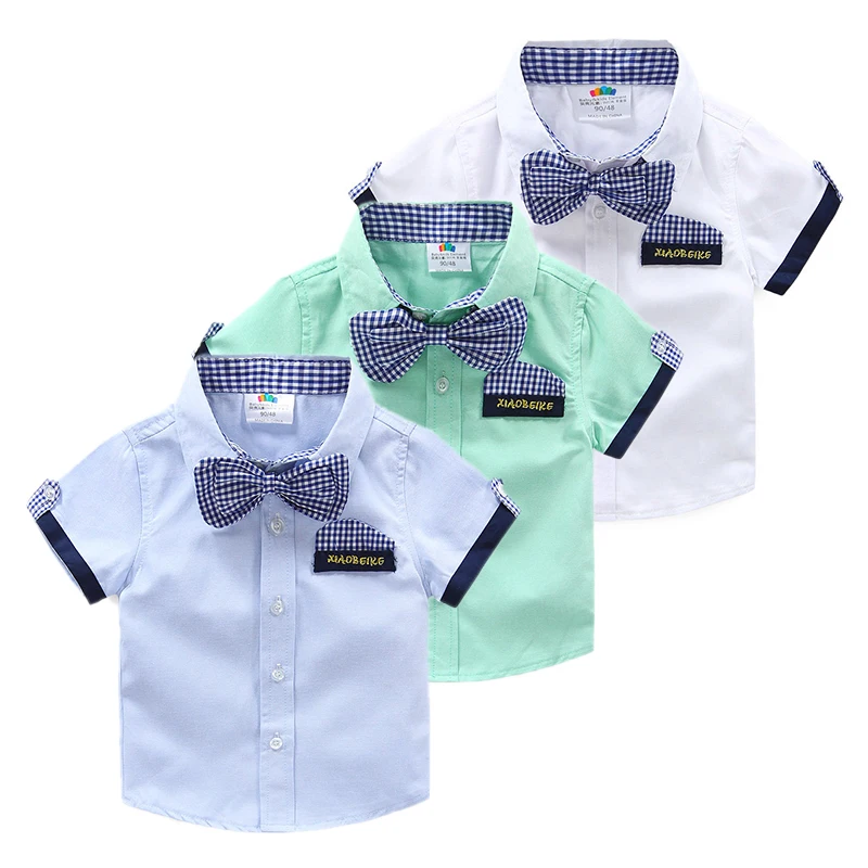 Летняя детская одежда в европейском стиле для детей 2, 3, 4, 5, 6, 7, 8, 9, 10 лет, красивая рубашка с галстуком-бабочкой и короткими рукавами для маленьких мальчиков, 2019