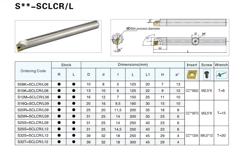 Это внутренний поворотный держатель инструментаS **-SCLCR/L-09Для 1 шт., если вы ищете другие модели, пожалуйста, свяжитесь с нами.