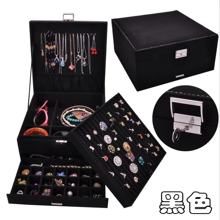 Новый стиль Роскошные Шкатулки для украшений 3 слоя с замком большо...