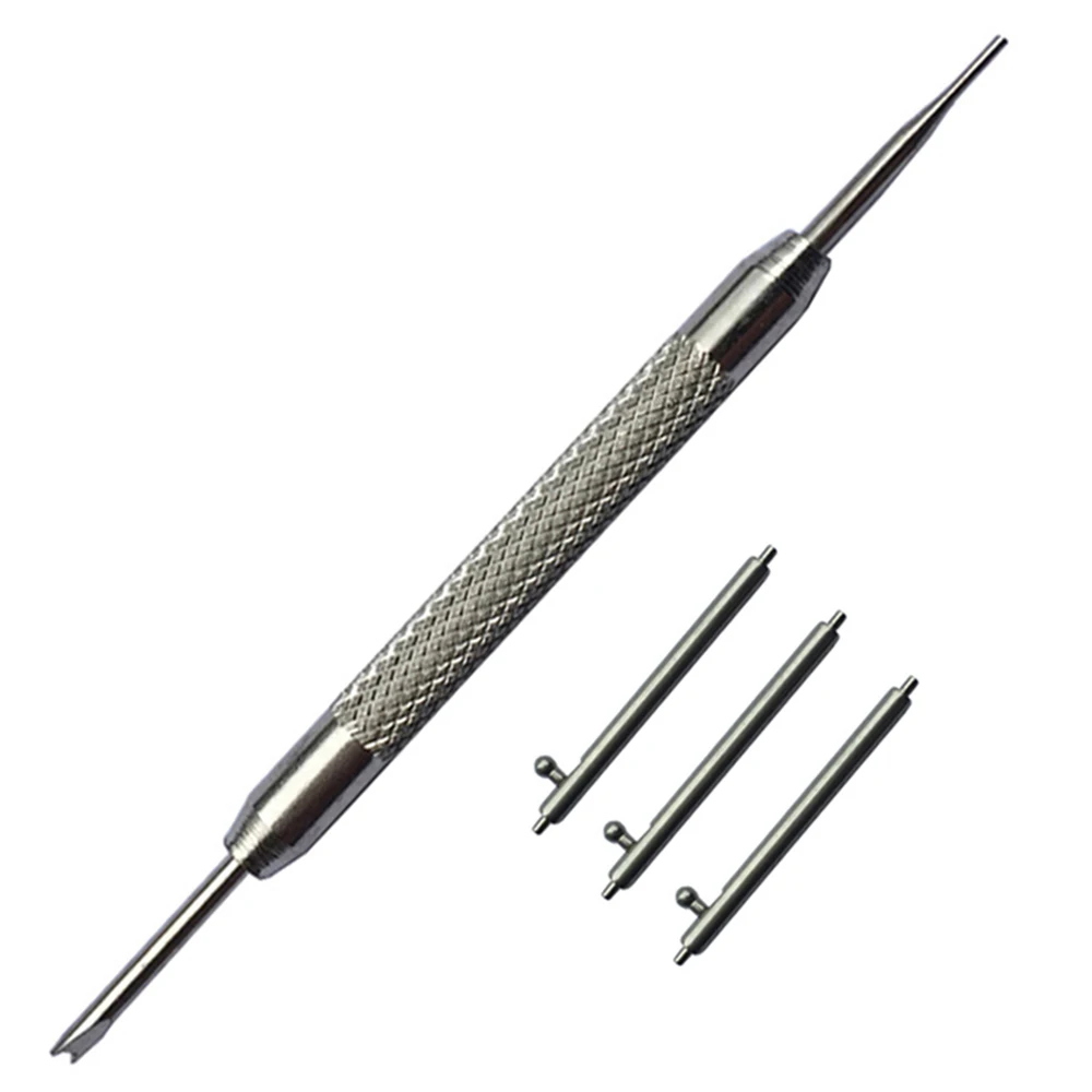 1. Чтобы удалить ссылку: пожалуйста, используйте конец «круглой формы» инструмента для часов, чтобы нажать «яму» конца штифта. Если все еще трудно перемещать штифт, плотно удерживайте инструмент для часов, указывая его на конец «ямы» штифта, и попытайтесь использовать молоток или другие инструменты, так, чтобы стучать в конце «вилки» инструмента для часов, затем штырь будет перемещен.