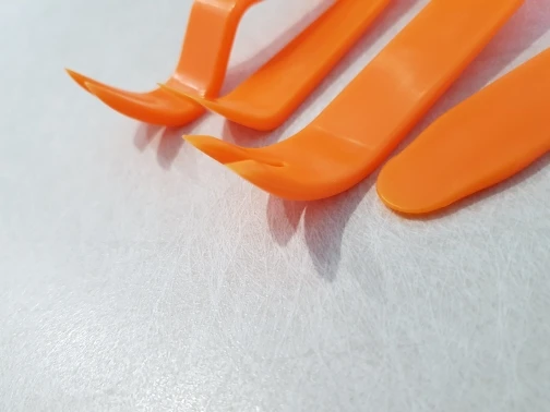 Отличный инструмент! Пластик средней жесткости, царапин не оставляет. рекомендую к покупке! Доставка 3 недели заняла.