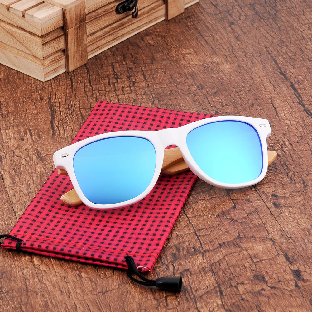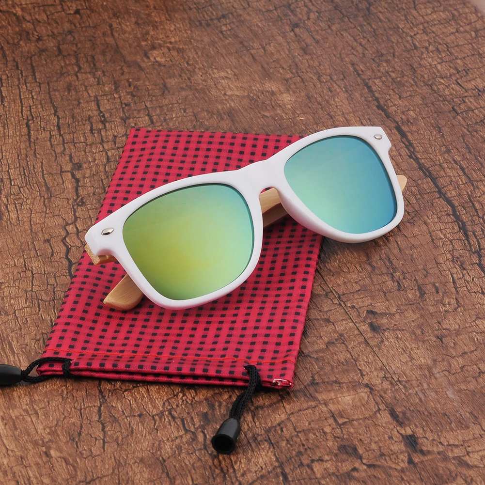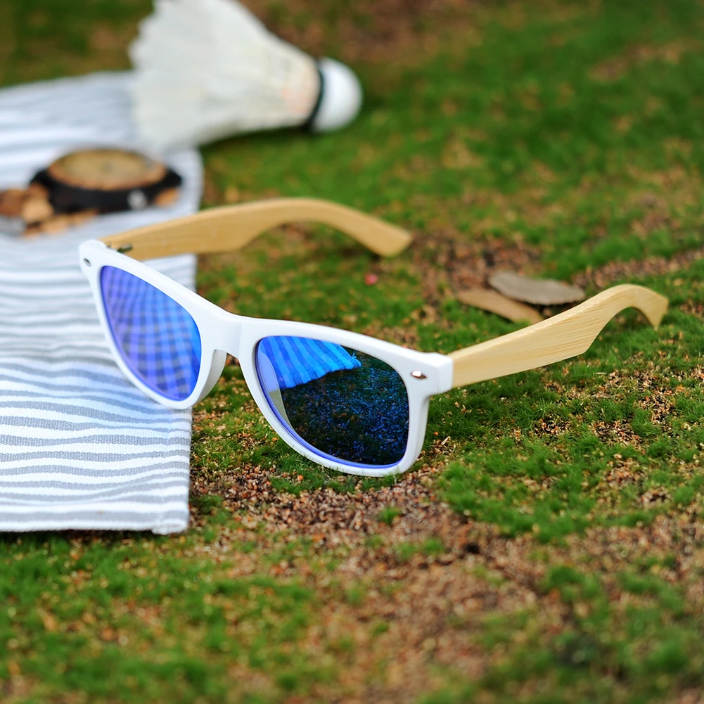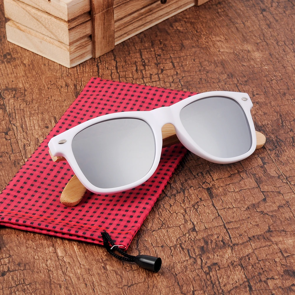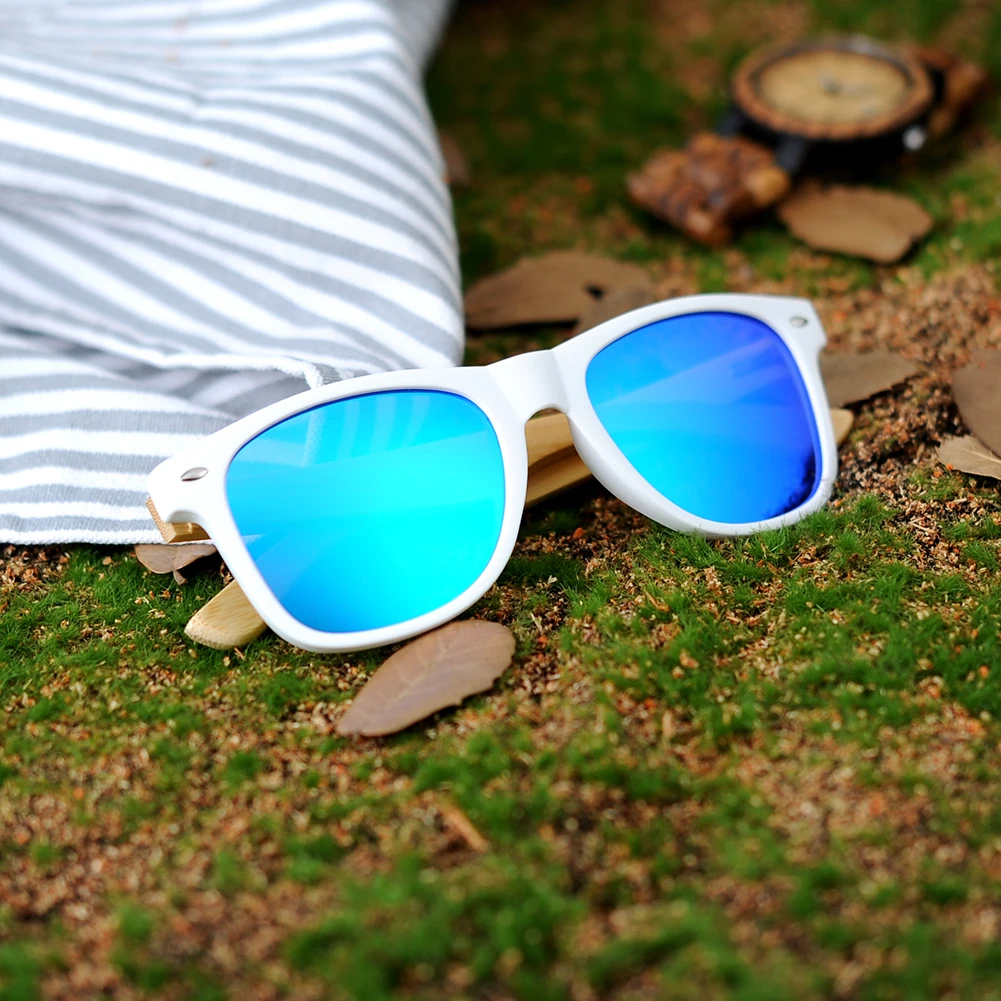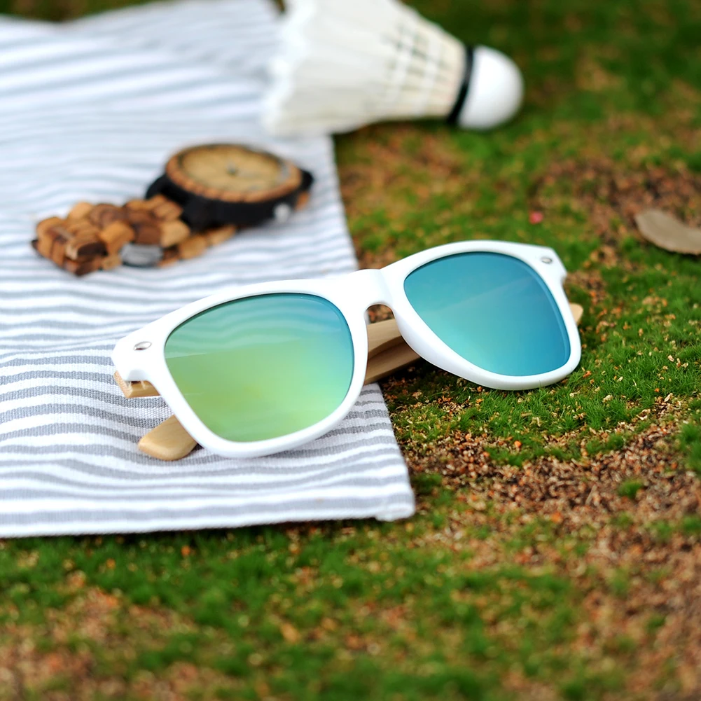 Солнцезащитные очки BOBO BIRD с бамбуковыми деревянными линзами, в белой оправе с зеркальными линзами, с защитой от ультрафиолета 400, в деревянной коробке