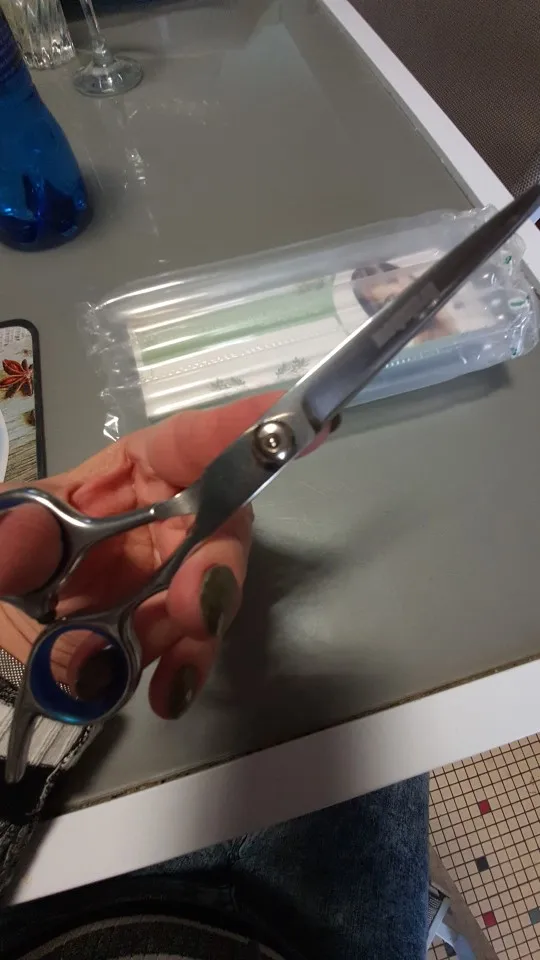 Я заказал 2 типа ножниц. Первое выражение действительно хорошее: лезвия острые, резиновая пробка и плавное использование. Винт позволяет правильно разобрать и дезинфицировать эти ножницы или затянуть их для калибровки мощности, необходимой для резки. Обе ножницы имеют пластиковую/силиконовую мягкую крышку. Все было хорошо упаковано, так что даже чехол был доставлен в довольно хорошем состоянии.
