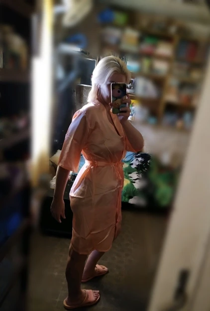 Доставка 2,5 месяца...пару ниток торчит, но вроде всё прошито аккуратно. Брала халат на рост 177см, ОГ 88, ОТ 70, ОБ 96. Кому как, но в обхвате надо брать было самый маленький размер - утонуть можно. Длина даже для меня хорошая - пижаму атласную с шортами скрывает.
