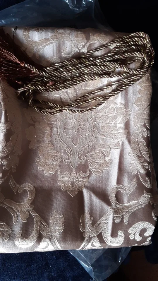 Красивые шторы. Очень богатый вид. Я попросить продавца сделать их с подкладкой внизу. Хорошо сшитые и точные размеры... единственное, что они были отправлены через почти 3 недели, и я получил их через 7 дней после того, как они были отправлены через UPS. В целом доволен покупкой.