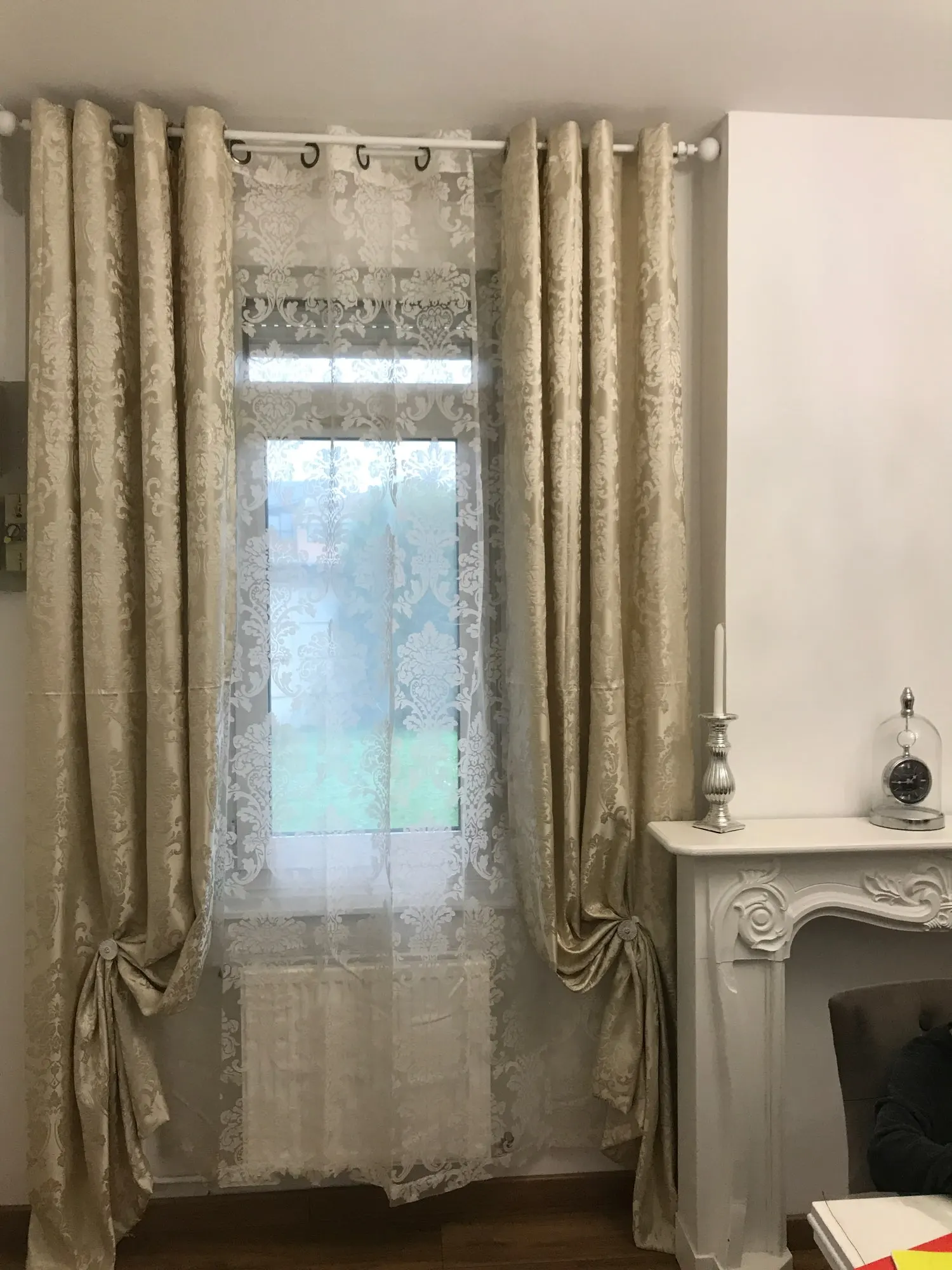 Штора великолепная, в живую гораздо красивее! Красиво и с изнаночной стороны ткани, очень люцикоса! Потрясающий дизайн из ткани и дамаста! Прошитая модель отлично подойдет по подолу! Эд пришел без времени здесь, в Швейцарии! Уникальный Маленький дефект, чистый бежевый цвет, прямой и серебряный люрекс с обратной стороны, не сильно темнеет, но просто сделайте ее близнец или Положите другую палатку более плотной, и вы закончите! Как только я пришла к нему сразу же помыть, растянуть и подвешивать в окно, чтобы высохнуть! Я могу только straconsigliarla!❤❤❤❤