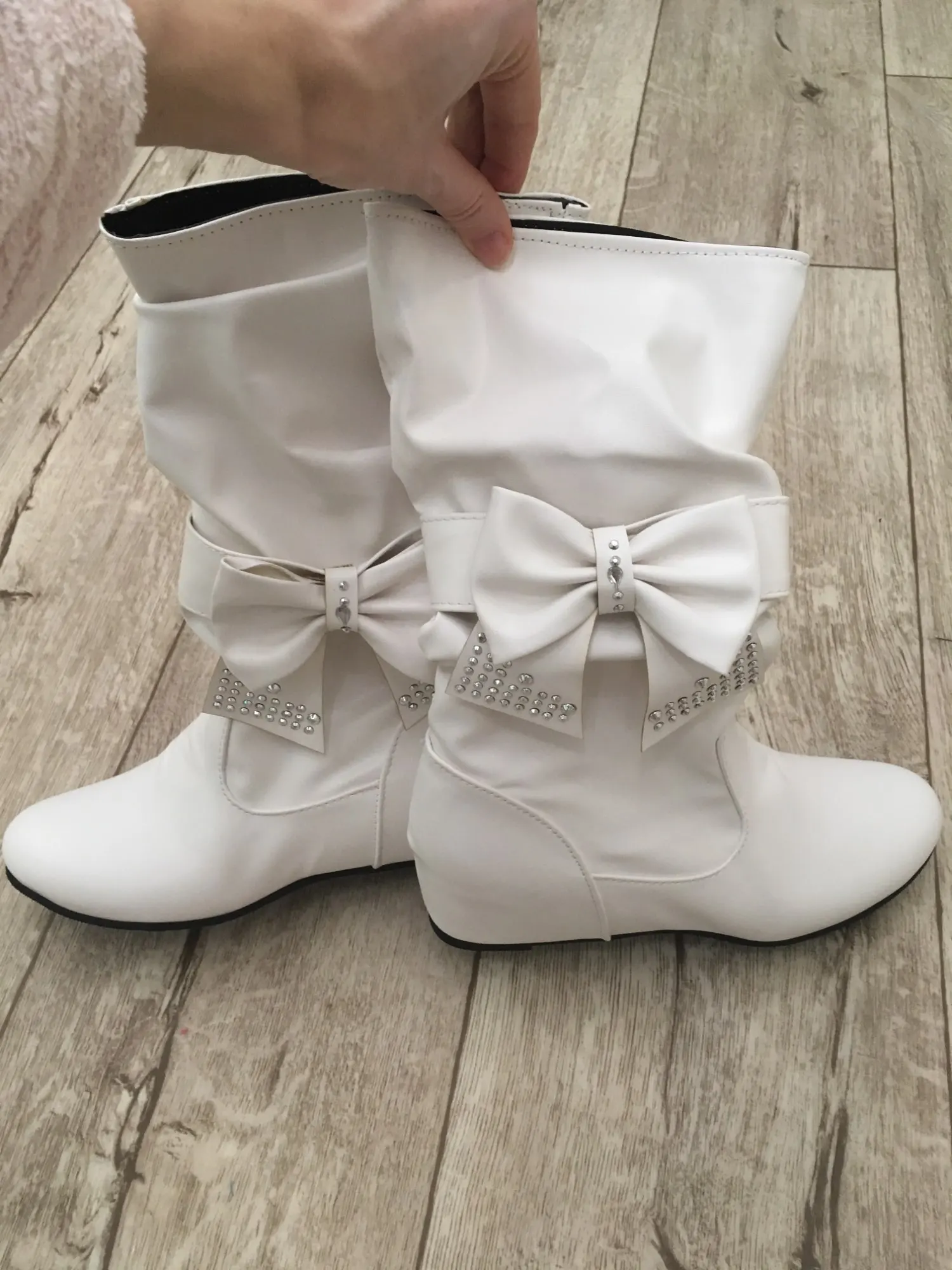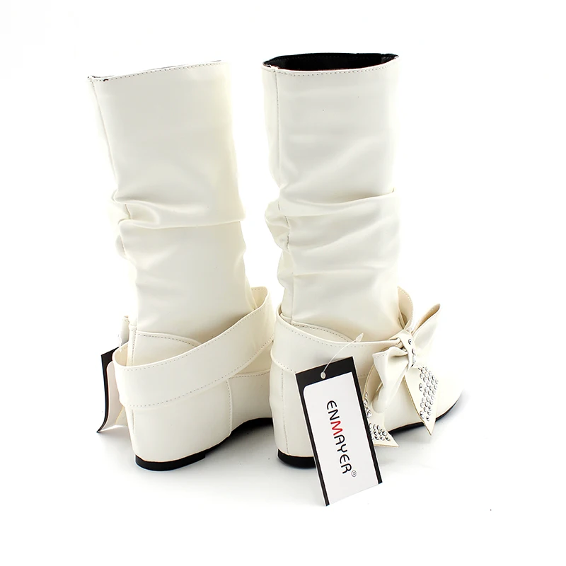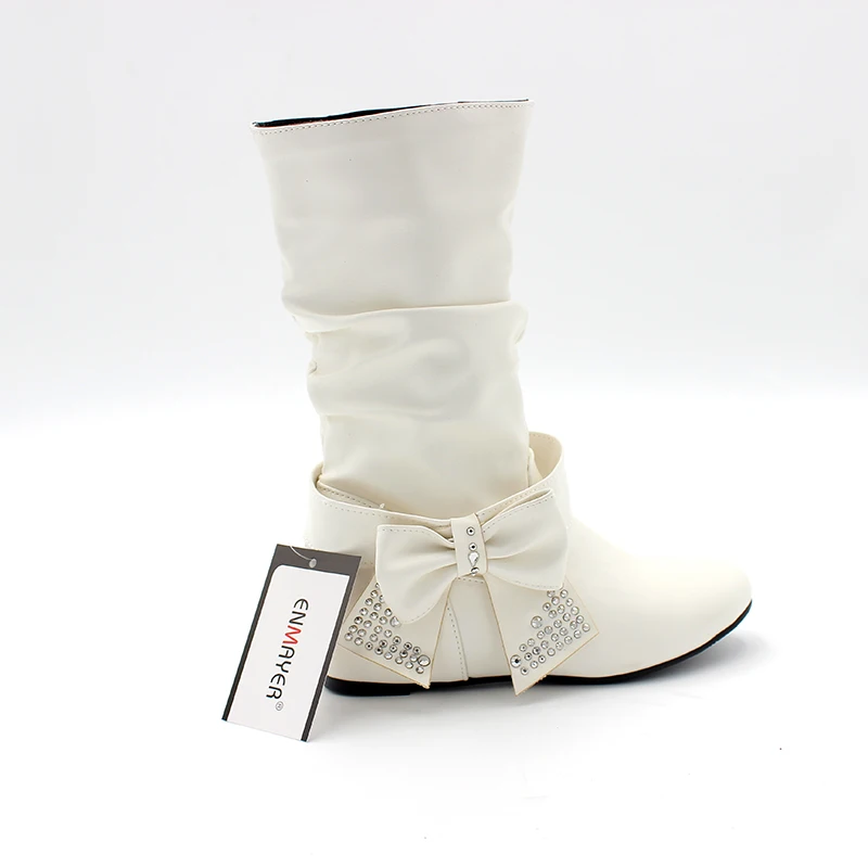 Новые дамские весенне-осенние ботинки ENMAYER с бантом на плоской подошве Дамские ботинки до середины икры в 4 расцветках Большие размеры (3447)