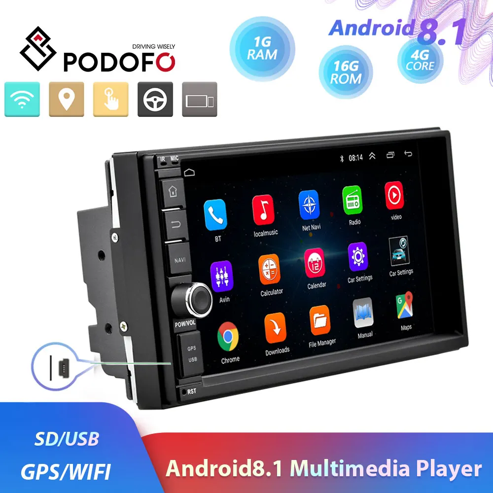 Автомобильная Мультимедийная система Podofo, универсальная стерео-система на Android 8,1, с 7 "экраном, Wi-Fi, GPS, для Volkswagen, Nissan, Hyundai, Kia, типоразмер 2DIN