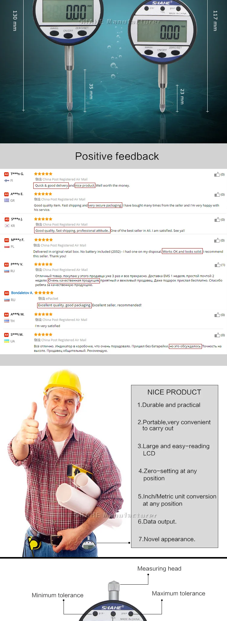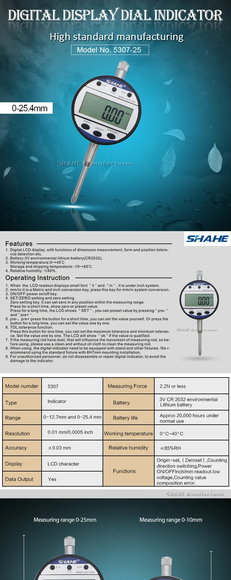 Цифровой циферблат SHAHE, 0-25,4 мм, 0,01 мм, инструменты для измерения, цифровой циферблат