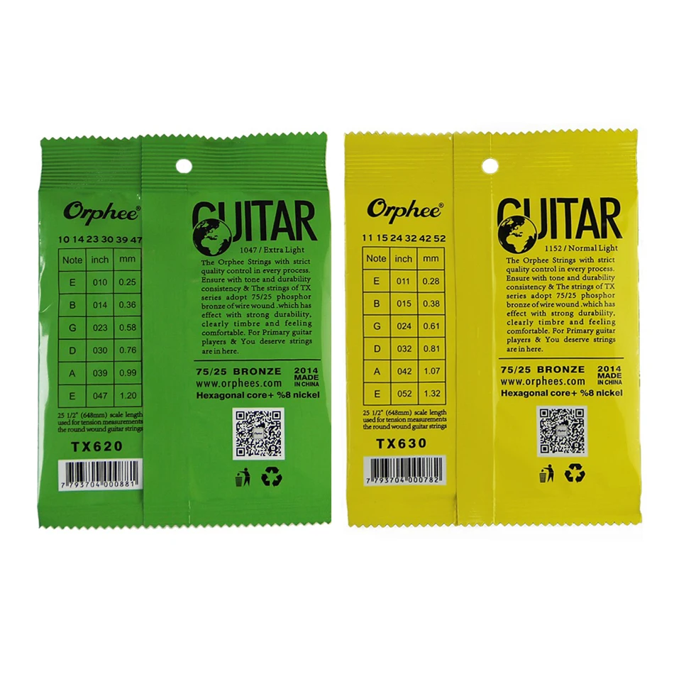 Струна для акустической гитары Orphee, 1 комплект, шестигранный сердечник + 8% никель, Тонированная Под яркую бронзу, сверхсветильник, сверхлегкая, сверхлегкая, средняя