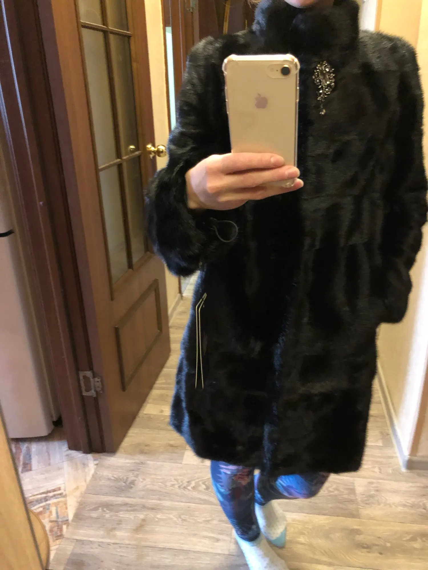 Длина шубы никого не смущает, она 85 см, а должна быть 90см, я доплатила за удлинение на 10см 60$. Под свои ботфорты и теперь мне не хватает этих 5см, кошмар. В остальном мех и пошив вроде нормальный, думала там нет пуговицы только брошь, эта старческая пуговица убивает,. И карманы... Карманы проем 13см...очень узко, пару раз залезла в карман и... и внизу порыв в 0.5 см. Открыла спор за длину, цвет интересный, очень красивы, вроде серый вроде с бежевым оттенком. Нет запаса ни по длине ни на рукавах, мех впритык подклад