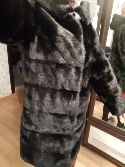 Шубка понравилась. Дошла за 25 дней, из них 10 дней была на таможне. Заплатила госпошлину, половину вернул продовец. Продовец с первых дней на связи, соорентировала по поводу размера. Я взяла рукав целый, можно и подол целый думаю брать. Посылка была в вакуумной упаковке, положили чехол и брошь пришита. Сначало была помята, не сильно пахла краской. Сразу продовец кинул инструкцию по уходу, вывесила на холод и потом в ванной устроила парилку 30минут, шуба расправилась и мех засиял. Рукав длинный, внизу резинка для утяжки и внутри на уровне пояса утянуть можно. Сшита хорошо, мех жиденький, но эта моя первая норковая шубка и я давольна. Конечно боялась, самая дорогая покупка на алике, но не прогодала. Наблюдала за магазинлм с осени 2019года. Однозначно рекомендую магазин, процветания и хороших клиентов.