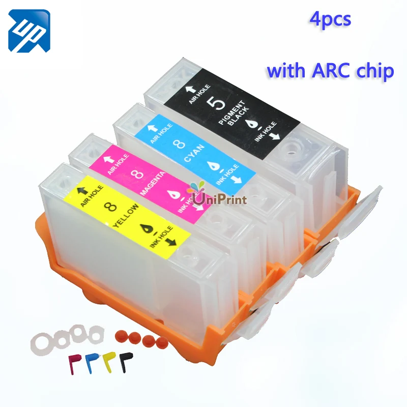 Посылка входит:1 комплект (4 шт.) Пустые чернильные многоразовые картриджи с новейшими ЧИПАМИ ARC "Auto Reset;