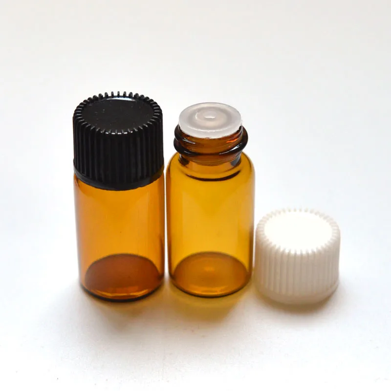 Маленькая бутылочка из янтарного стекла с редуктором и отверстием, 10 шт., 3 мл, Маленькие Бутылочки для образцов эфирного масла, мини-бутылочка