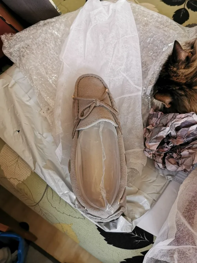 Wszystko jak w opisie. Rozmiar 39 jest o ok 0,5 rozmiaru zawyżony. Kolor jest bardzo stonowany, dokładnie jak na moim zdjęciu. Nie jest to taki jak w ofercie fajny rudy. Brak oznakowania z jakiego materiału jest wykonany. Buty do jazdy samochodem, czy na myjnię są super. Przesyłka doręczona w 33 dni.