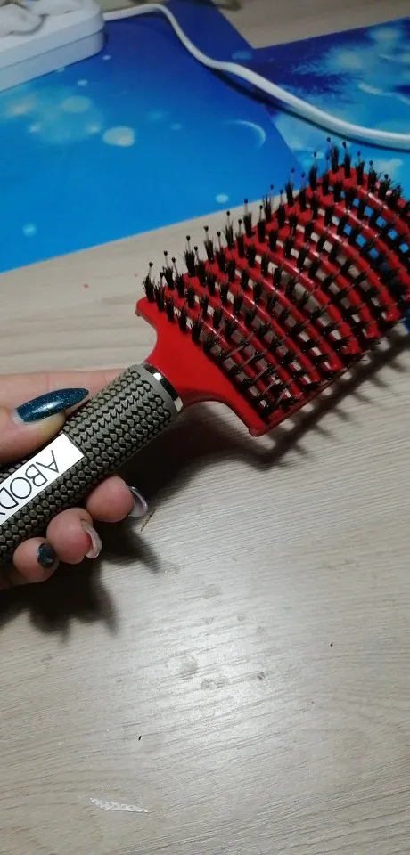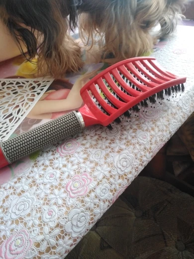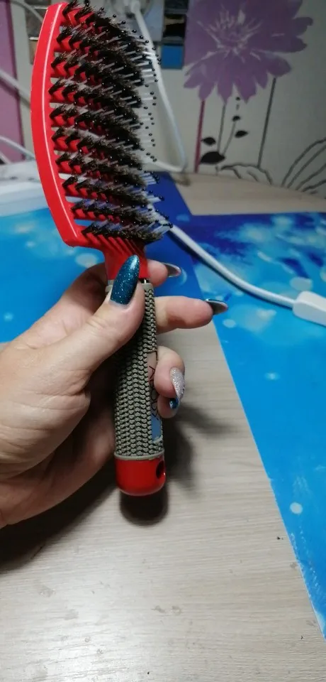 Крутая кисть. Идеально подходит для густых волос, потому что достигает их конца. Однако, острый, подходит для ребенка среднего размера. Не ловит слишком волосы, только один флокирующий наоколо-не такой, это минус для кисти с кабаной щетиной. Для очень густых волос рекомендуем. Быстрая доставка.
