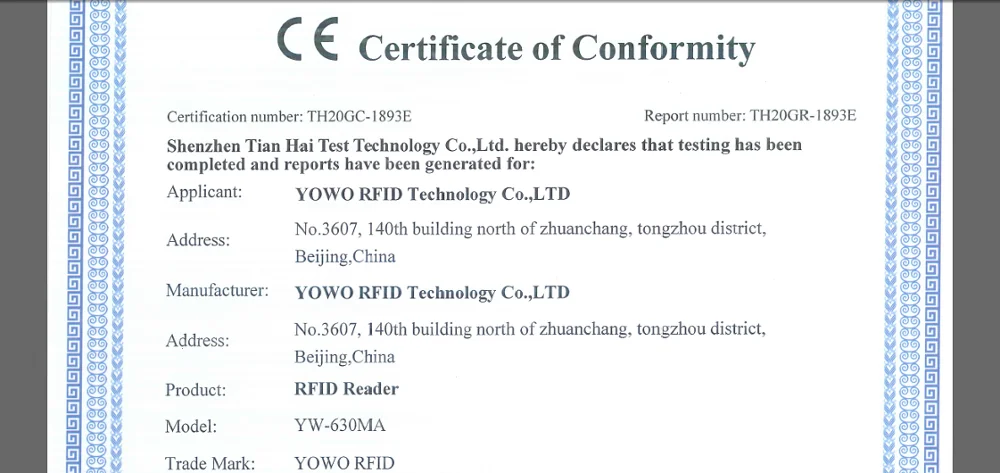 YW-630MA-считыватель HF RFID, он разработан для ПЛК. Он может напрямую подключаться к ПЛК. YW-630MA RFID-считыватель работает с Modbus-rtu через RS485, вы можете читать и записывать некоторые регистры для управления RFID-считывателем на ПЛК. Это легко сделать. YW-630MA-это продукт с сертификатом CE.