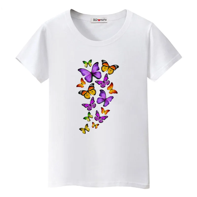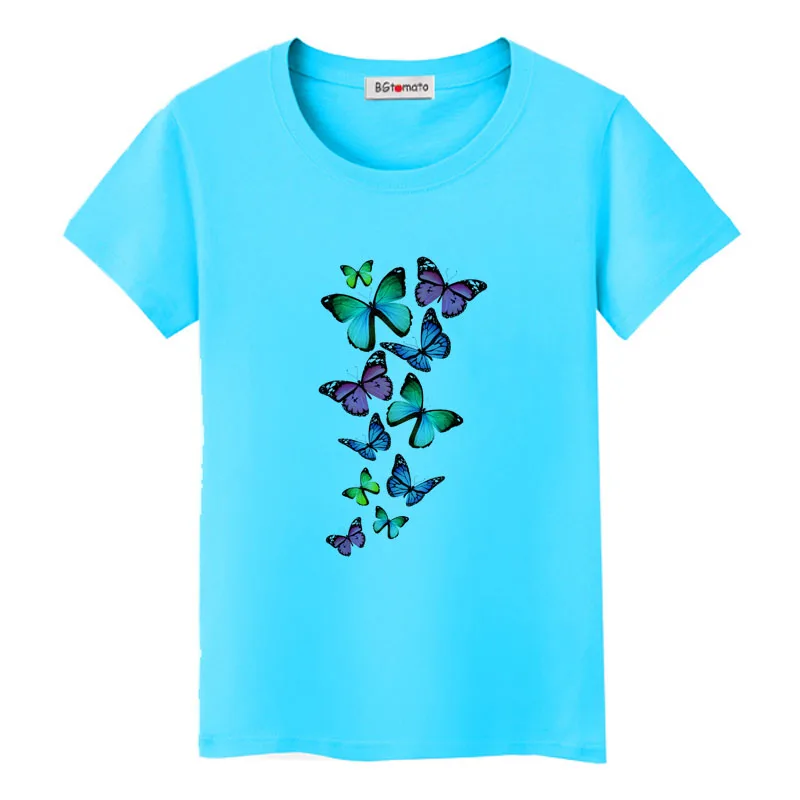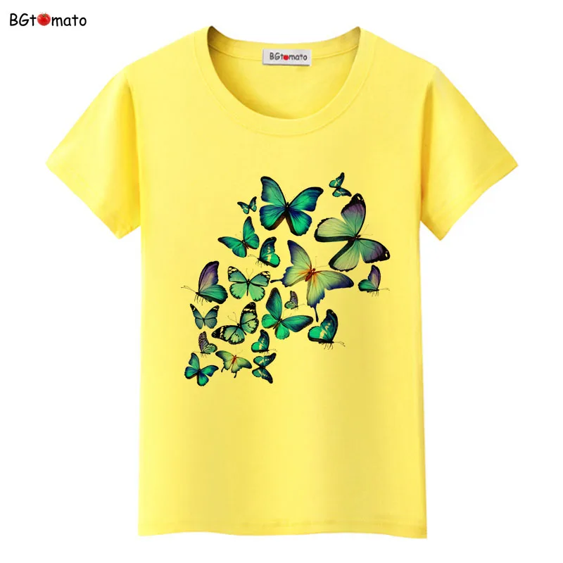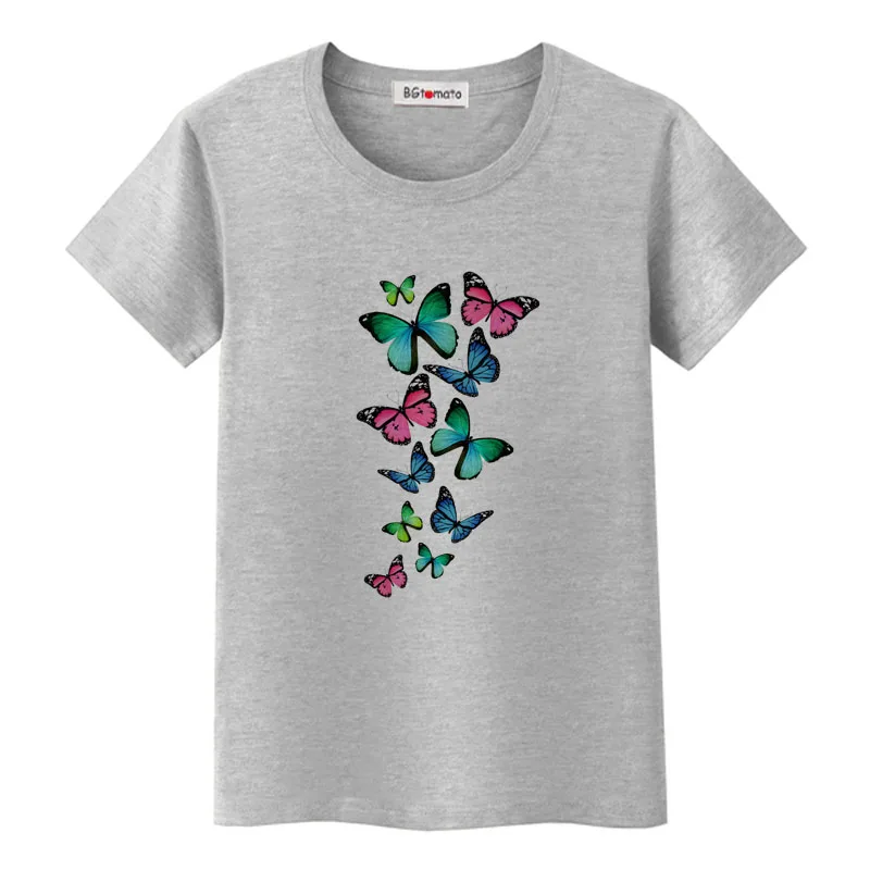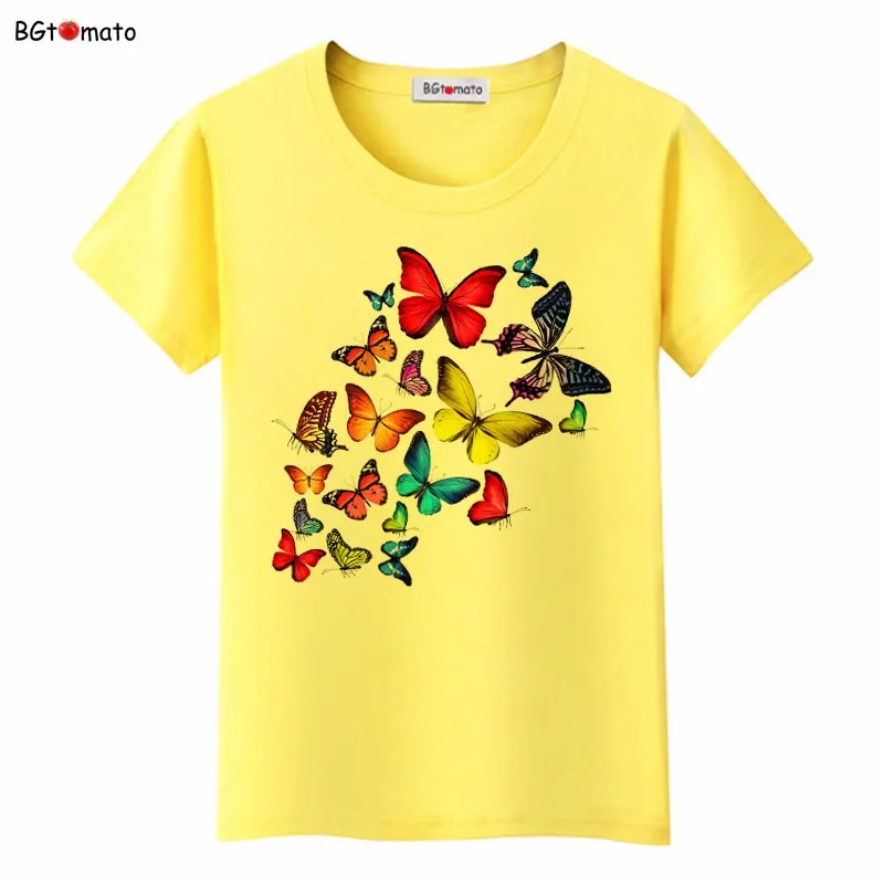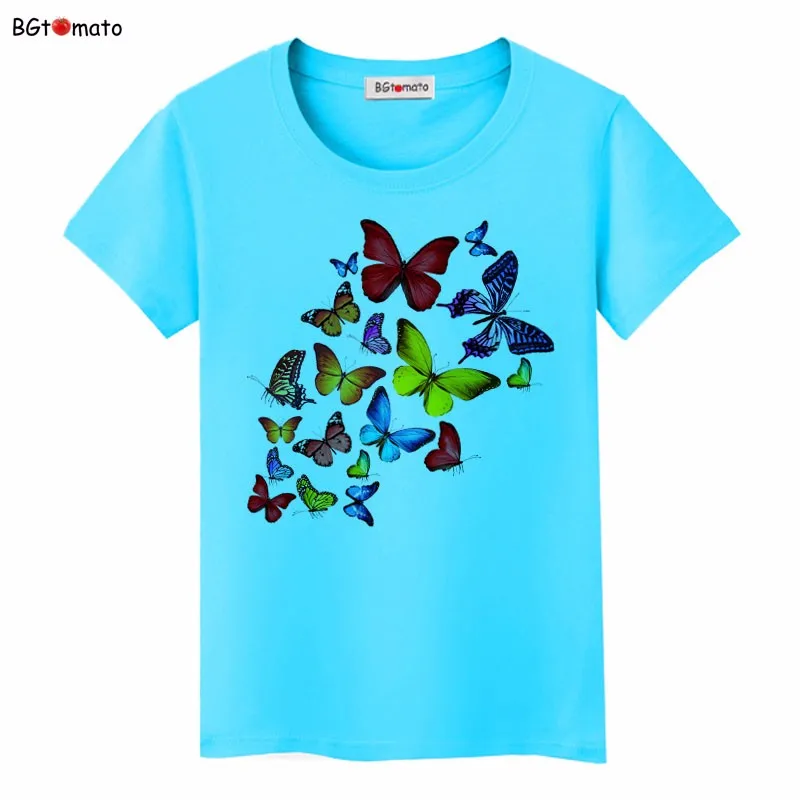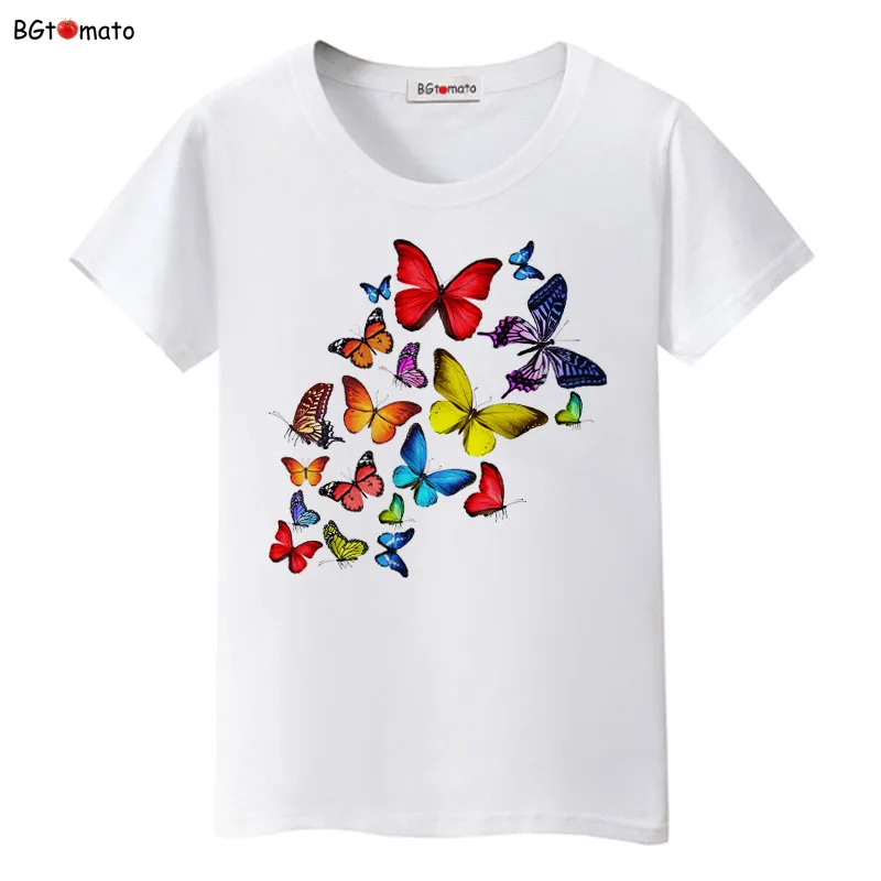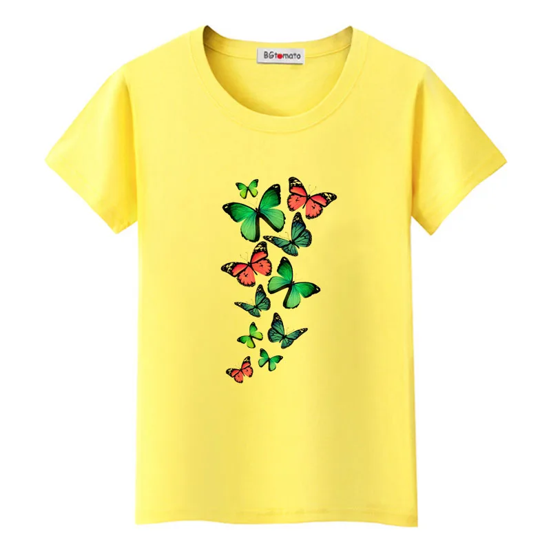 Летняя красочная футболка bgtomato с бабочкой, Женская милая одежда, футболка, крутые топы, брендовые футболки, Милая женская футболка для влюбленных