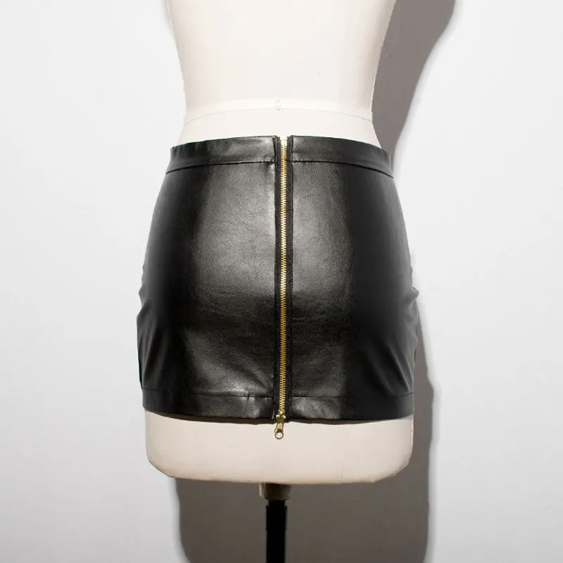 Мини-юбка из искусственной кожи, облегающая юбка-карандаш с завышенной талией и поясом, пикантная Клубная одежда на молнии, FX017