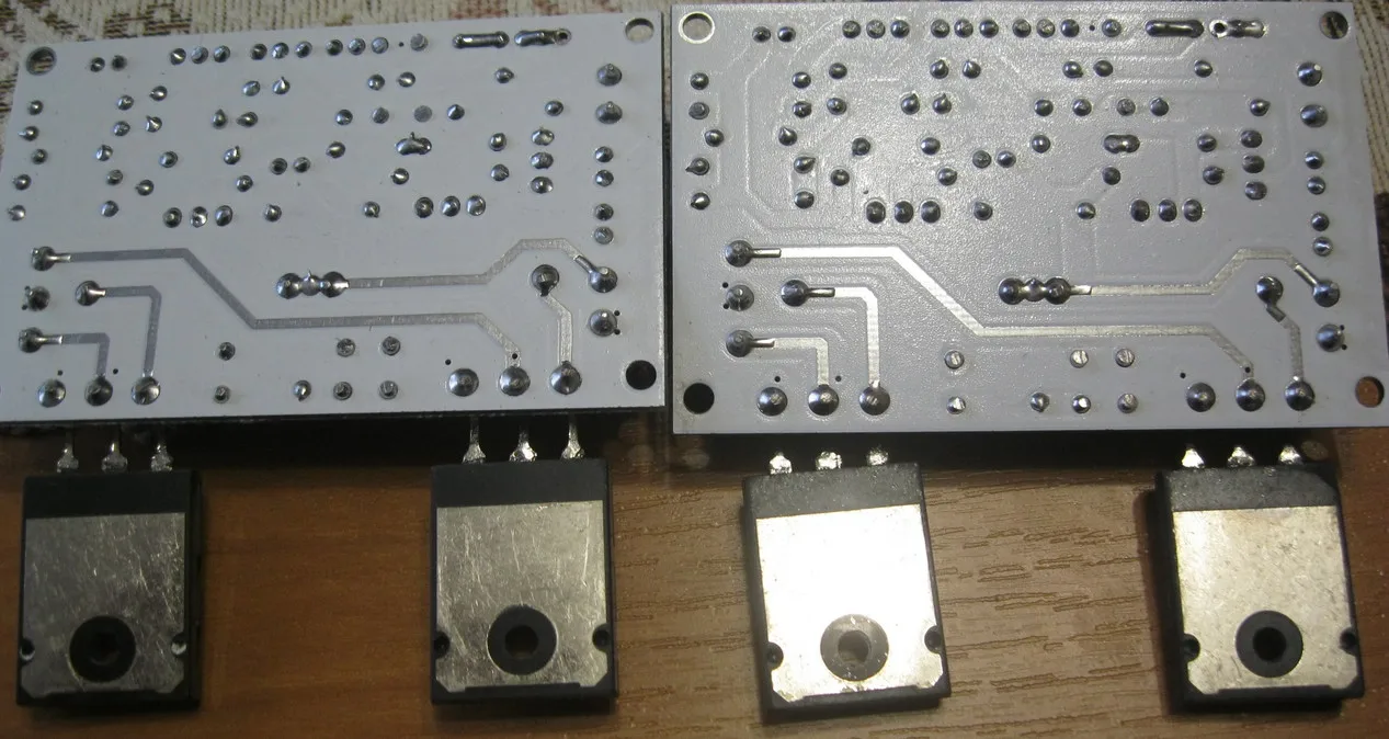 Спасибо, всё пришло, еще не запускал. Мб потом дополню отзыв. Видно, что транзисторы б/у, осталась паста в отверстии, где закручивается винт, но это значит они оригинальные. Платы красивые, сверху черные, снизу белые.