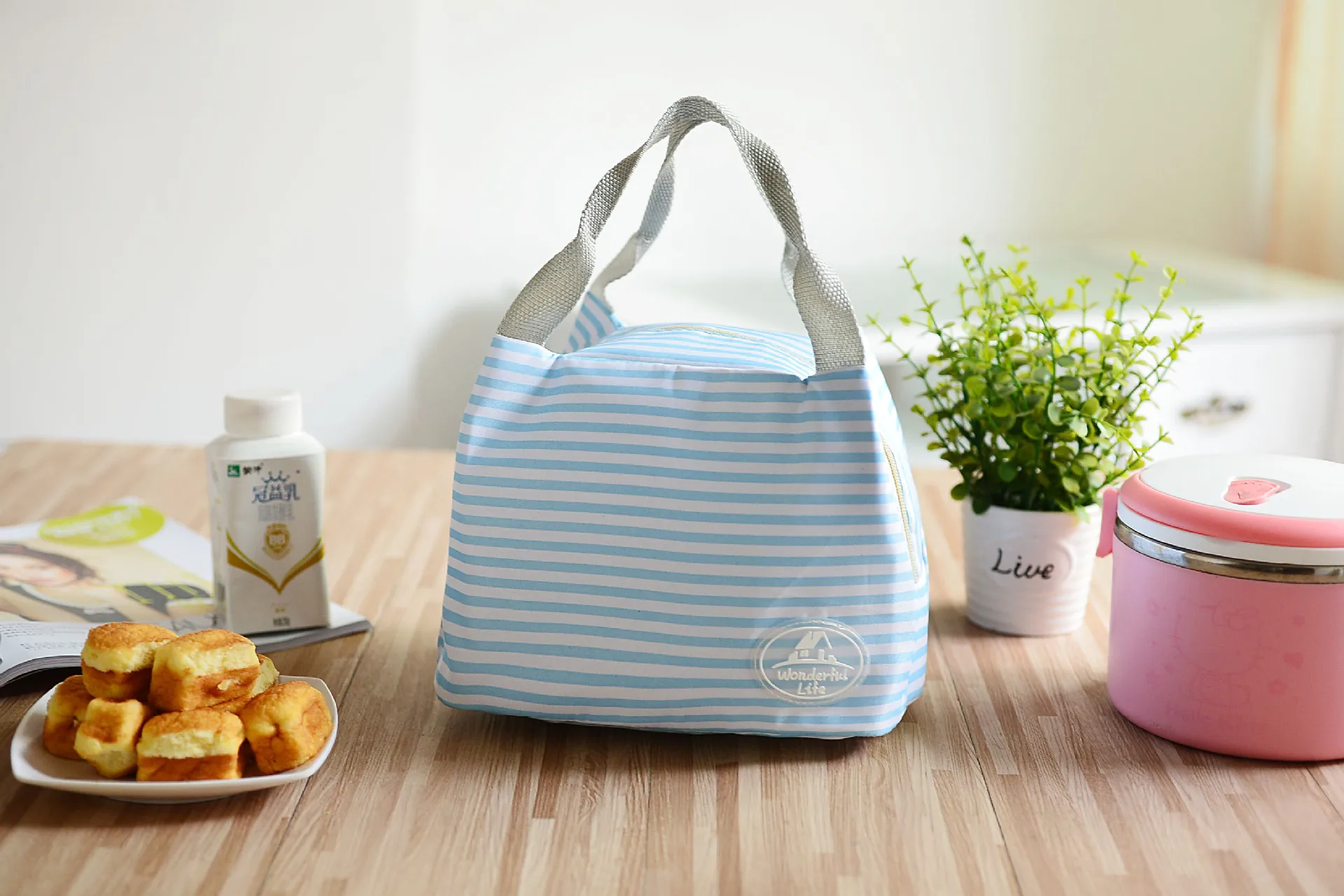 Термоизолированная коробка для пикника-сумка для обеды, контейнер для женщин, сумка в полоску, детская дорожная сумка