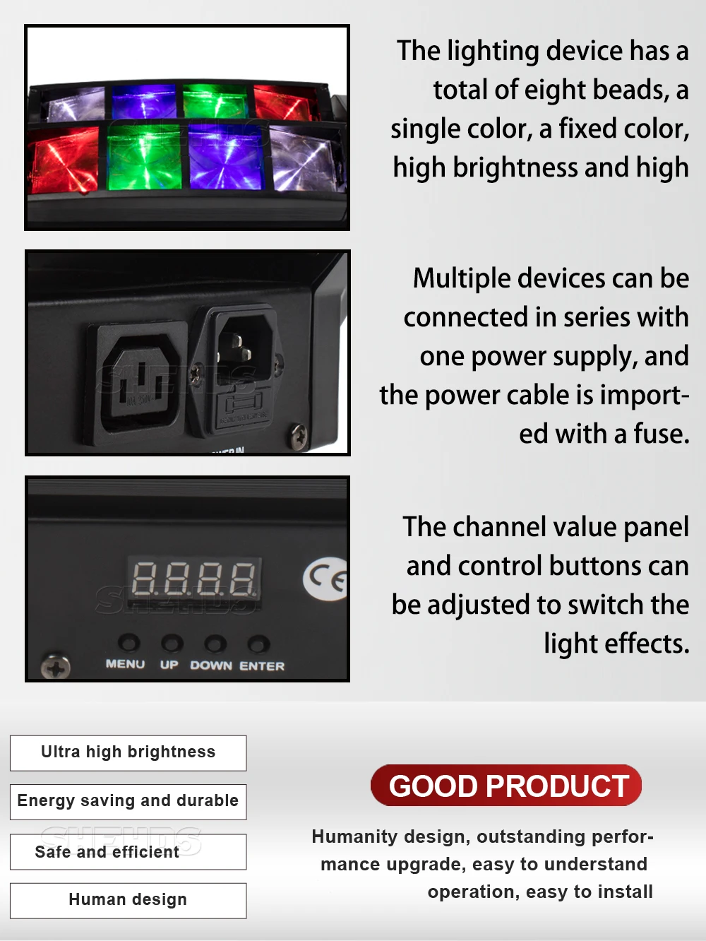 * Светодиодный источник: 8x6W красный, зеленый, синий, белый и смешанный цвет