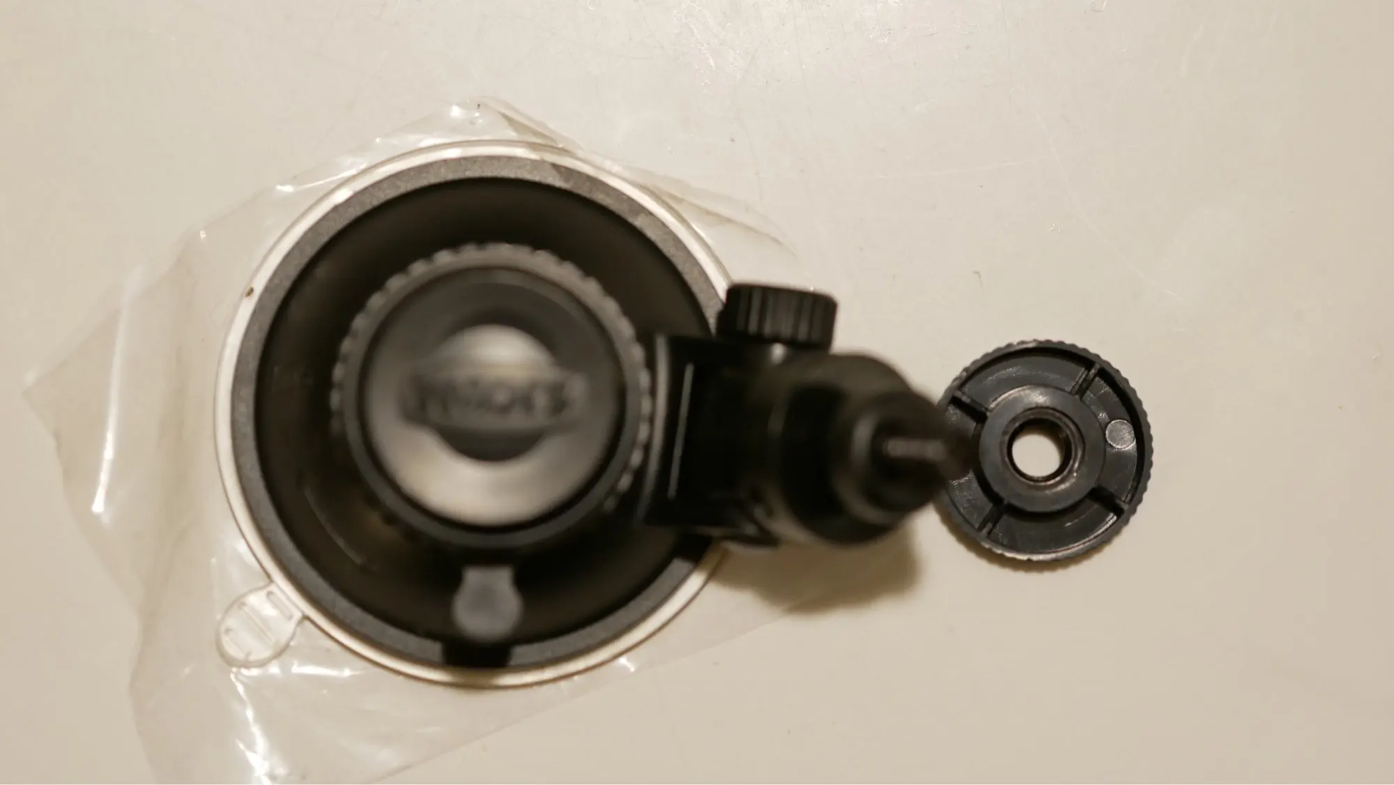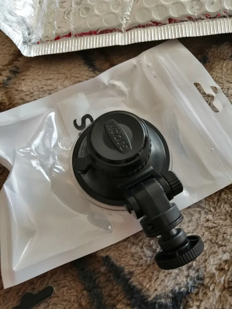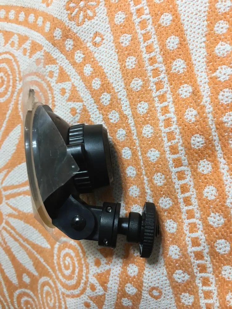 Хороший держатель, качественный, для небольших камер или регистраторов. Контрагайга толстая, пластиковая, занимает большую часть резьбы. Присасывается хорошо, соединения не болтаются, имеются зубчатые прижимные соединения регулировки угла наклона. Резинавая часть присоски была покрыта липкой пленкой. Упаковано в оригинальную упаковку и пакет с пупыркой. На фото товар с белой надписью а пришел с теснением от формы, т.е. лого просто выдавлено. Не существенное отличие, пока только единственное. В целом доволен, спасибо продавцу.