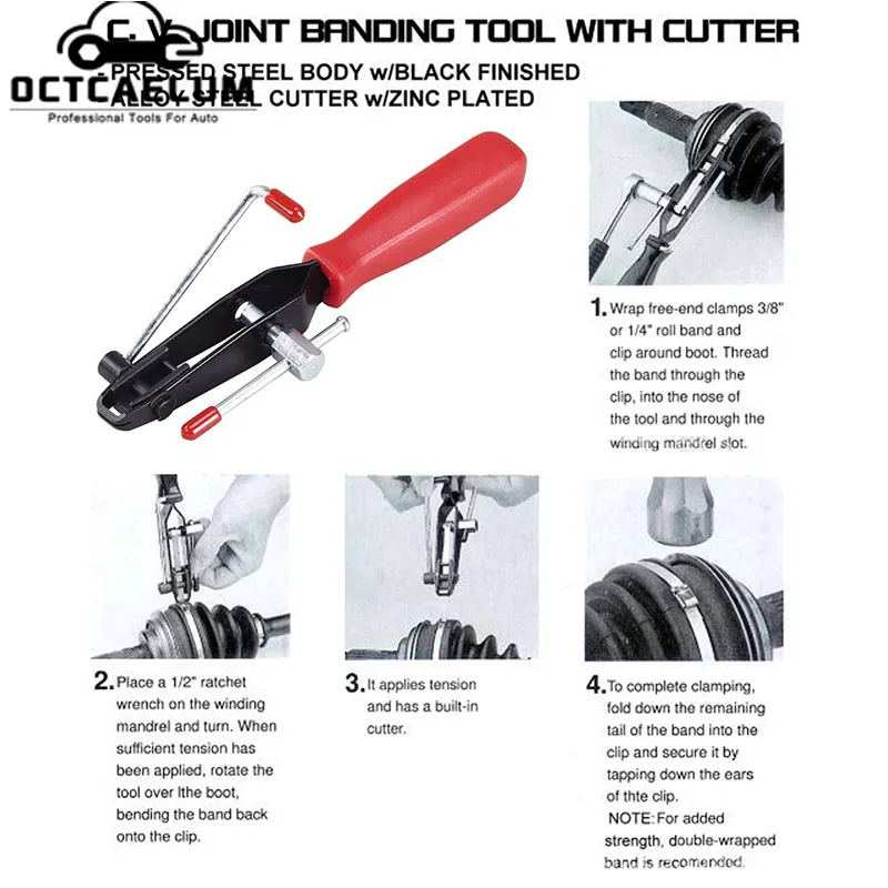 Используйте для установки и затягивания ленты-это или ремешок стиль хомутов на CV совместных ботинках или на усиленной рулевой рейке и шестеренки руля сапоги
