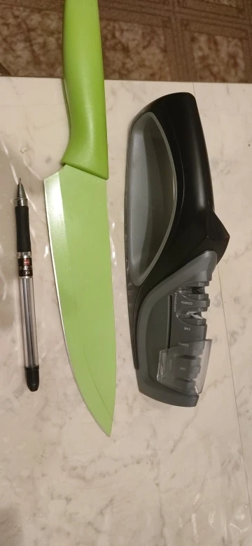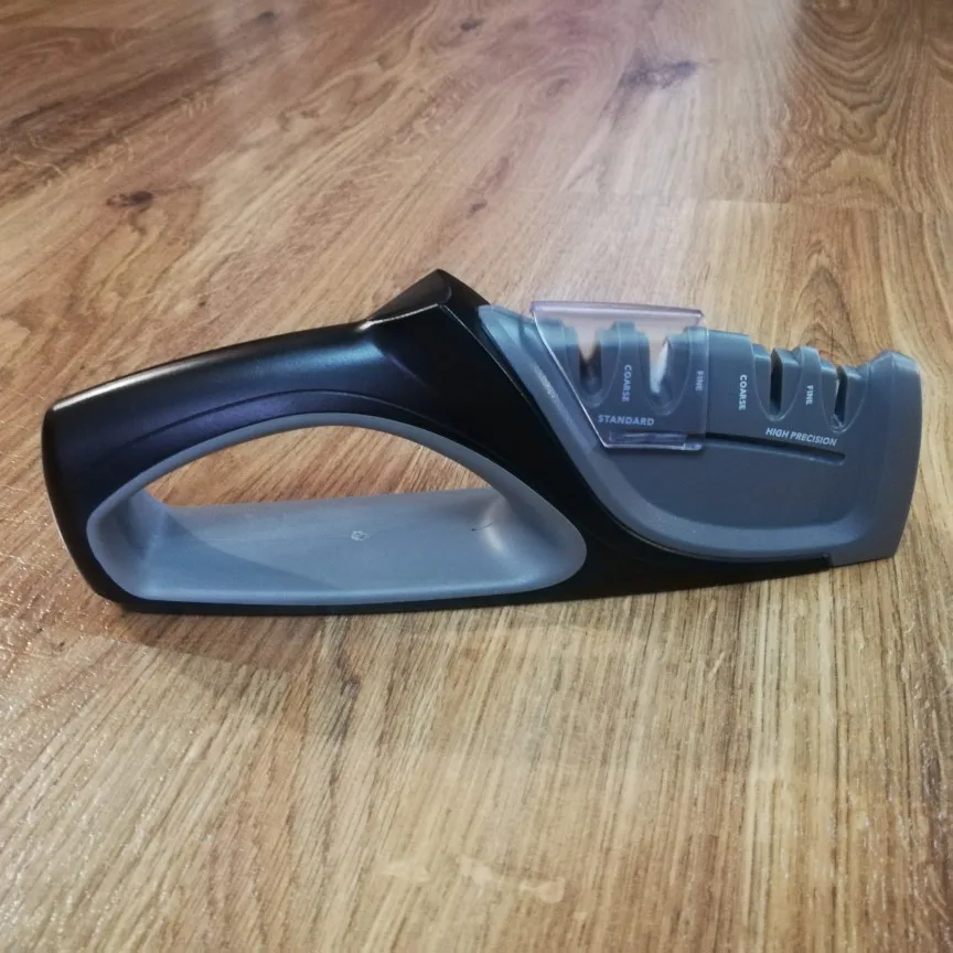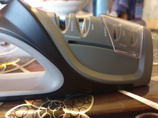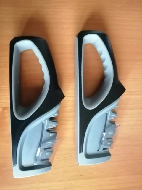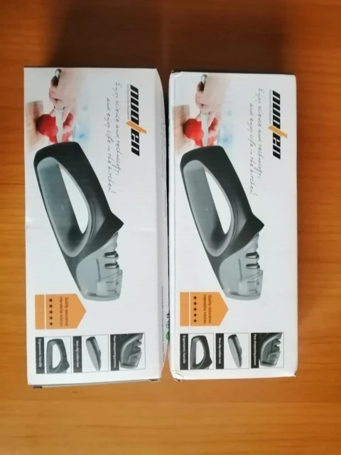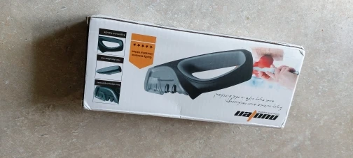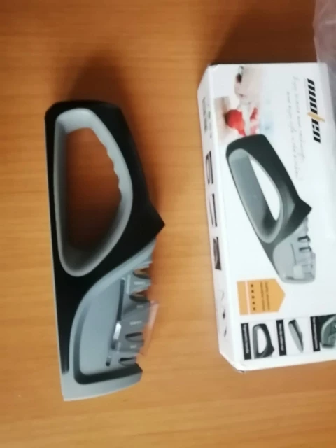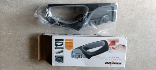 Быстрая доставка. Ножеточка понравилась. Удобная прорезиненная ручка и основание. Для тех, кто точит ножи при определённых фазах Луны до остроты срезания волоса, конечно не подойдёт :) Но для кухни быстрое и надёжное решение. Сильно не давите, тяните лезвие только на себя.