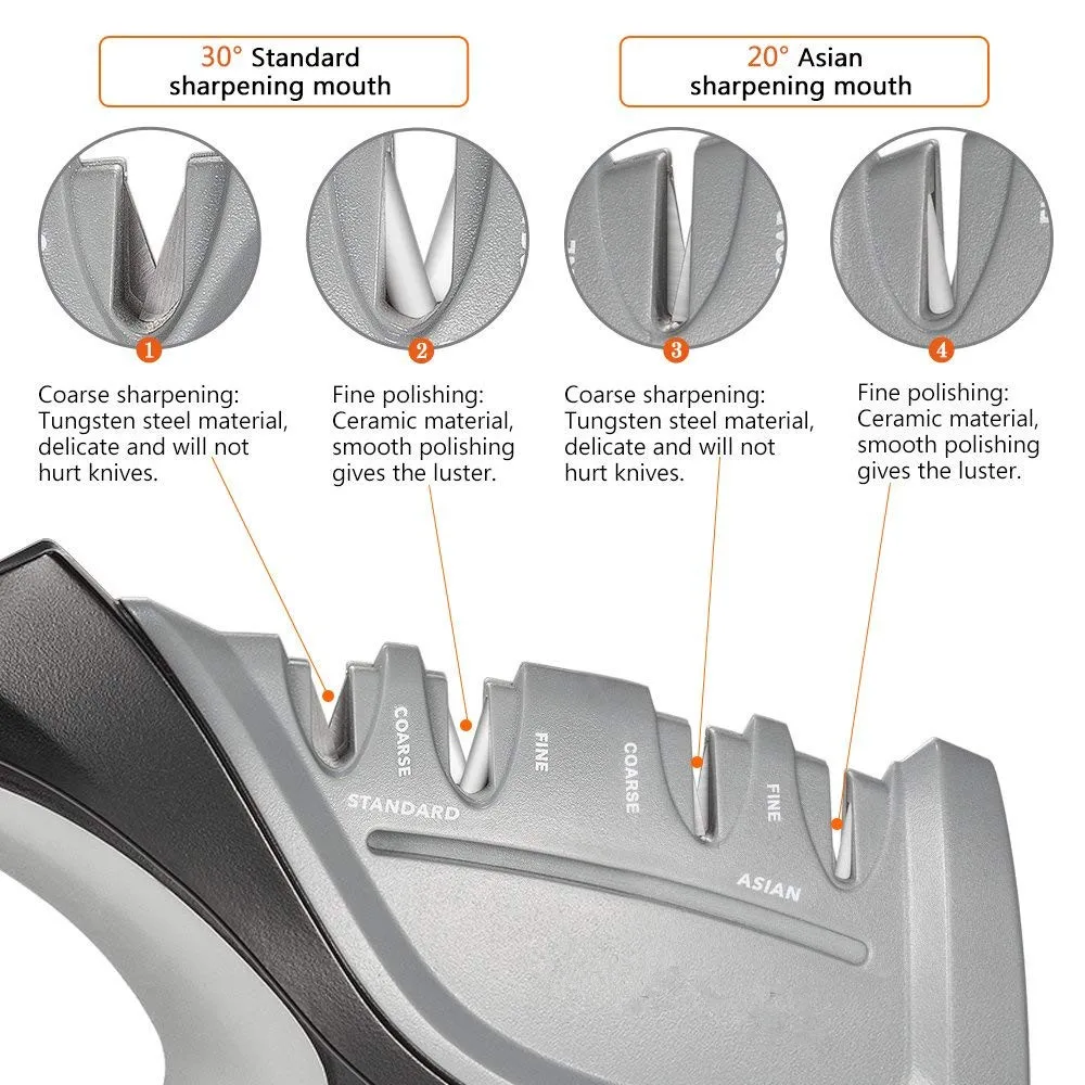 точилка очень удобная, ножи точит хорошо, сравнить не с чем, но остро вполне