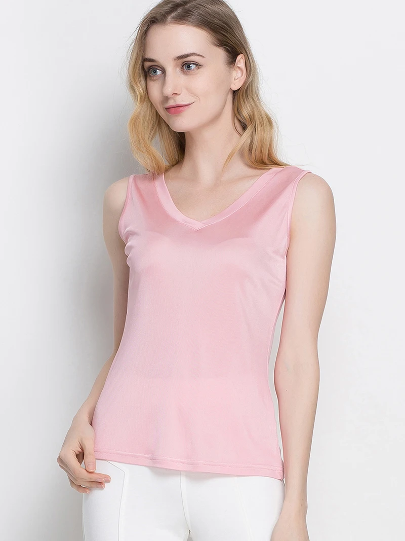 SuyaDream женские топы на бретельках из 100% натурального шелка без рукавов V жилеты с вырезом 2022 летние розовые синие рубашки