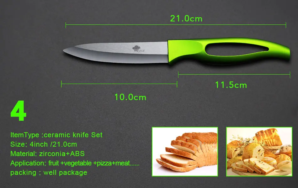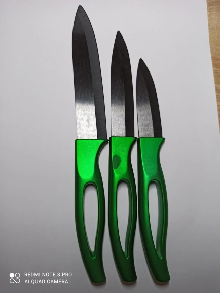 Набор керамических ножей высокого качества, 3 дюйма, 4 дюйма, 5 дюймов, черное лезвие, зеленая ручка, для очистки фруктов, кухонные ножи