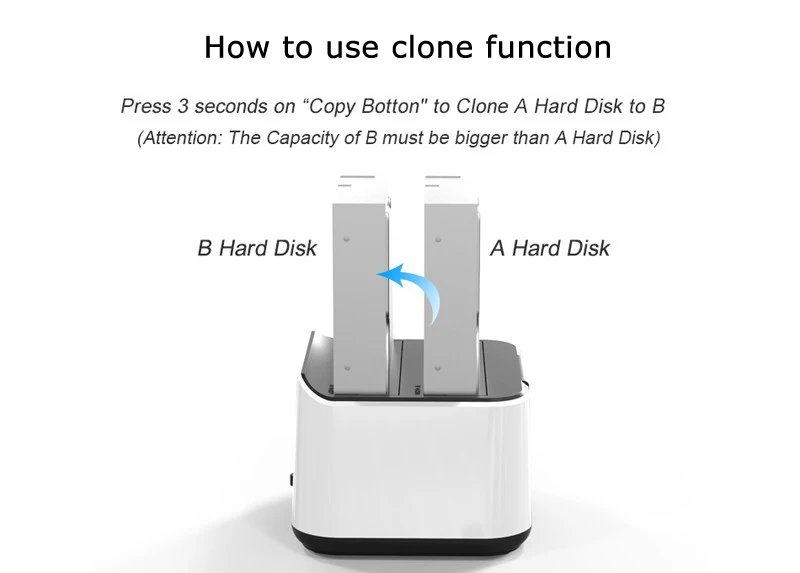 докстанция нормальная, диски видит, скорость хорошая. как клонстанция - есть моменты: диск В должен быть больше по емкости. чем диск А, иначе не скопирует (даже если занято на диске всего 10% и меньше... бред какой-то.