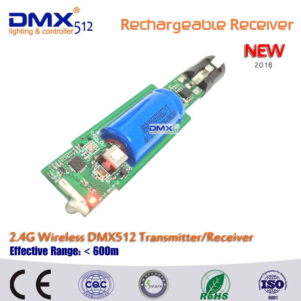 2,4 Ghz DMX Встроенный перезаряжаемый аккумулятор беспроводной DMX приемник для батареи led par can сценический свет