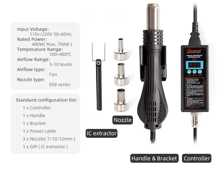 Паяльная станция BGA, портативная Тепловая пушка, 8858 в, 110 В, 220 В, Интеллектуальное обнаружение, ЖК-дисплей