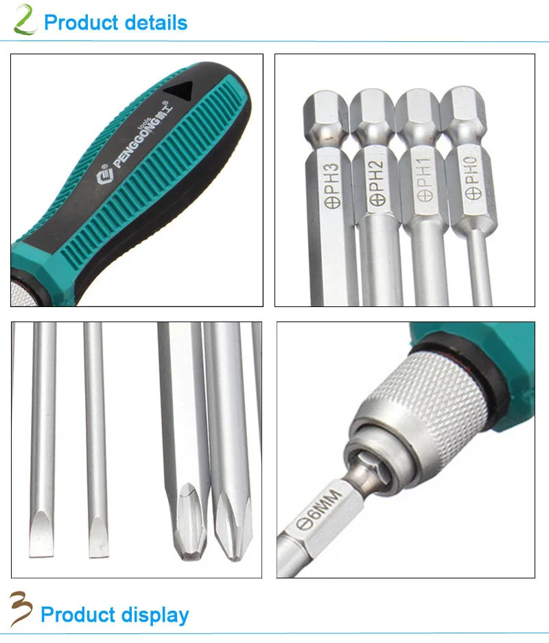 Набор прецизионных насадок для отверток 9 шт.компл., Набор насадок для отверток 8108, комплект из 8 насадок и 1 резиновой ручки