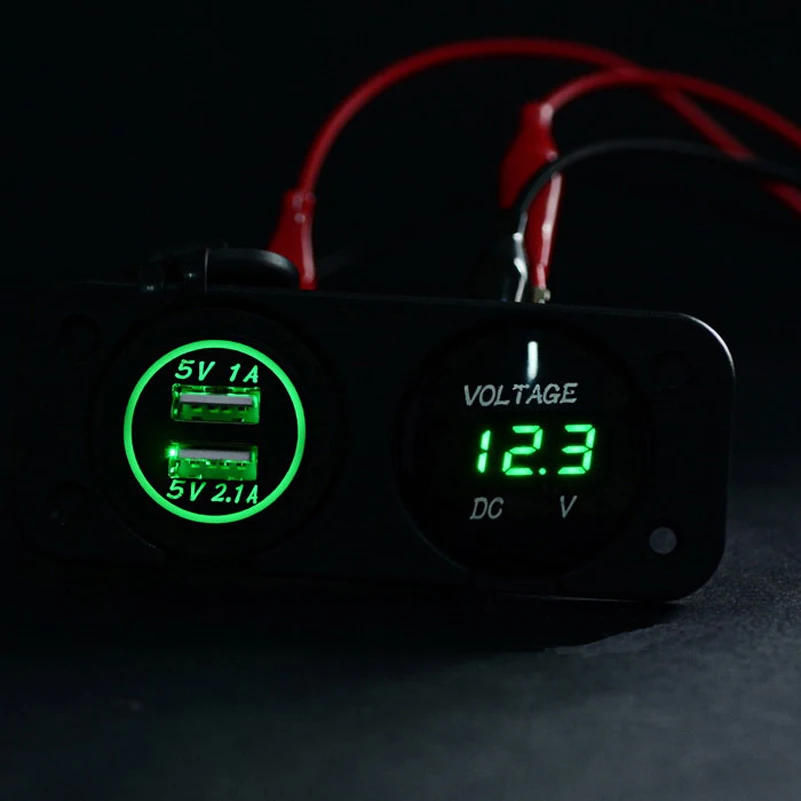 DC 12V - 24V светодиодный цифровой вольтметр + Dual USB Автомобильное зарядное устройство для мотоцикла 2.1A1A для автомобиля мотоцикла зеленый синий красный