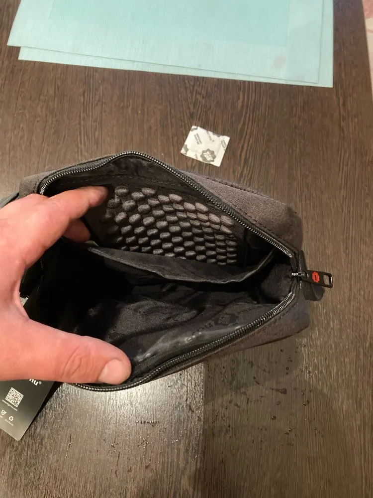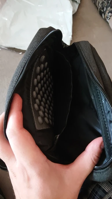 Сумкой доволен. Есть внешние отделение где язычок молнии убирается , значит там можно хранить документы. Хорошее качество материи из каторой сделана сумка. В отделении где можно положить Ipad mini проложена пузырчатая стенка. Я за него спокоен.